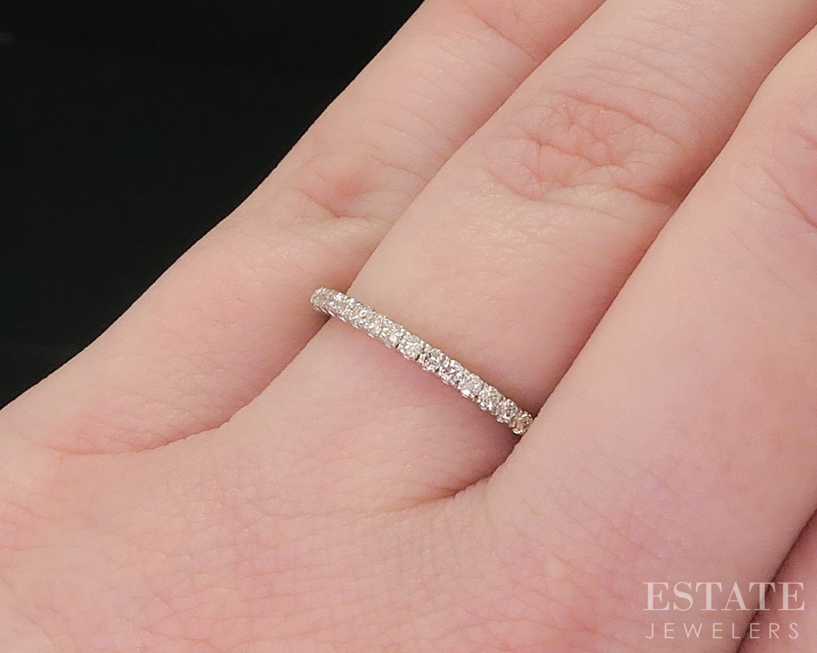 Additional Info: Lovely 1.6mm wedding band with round cut Diamonds set throughout the front.