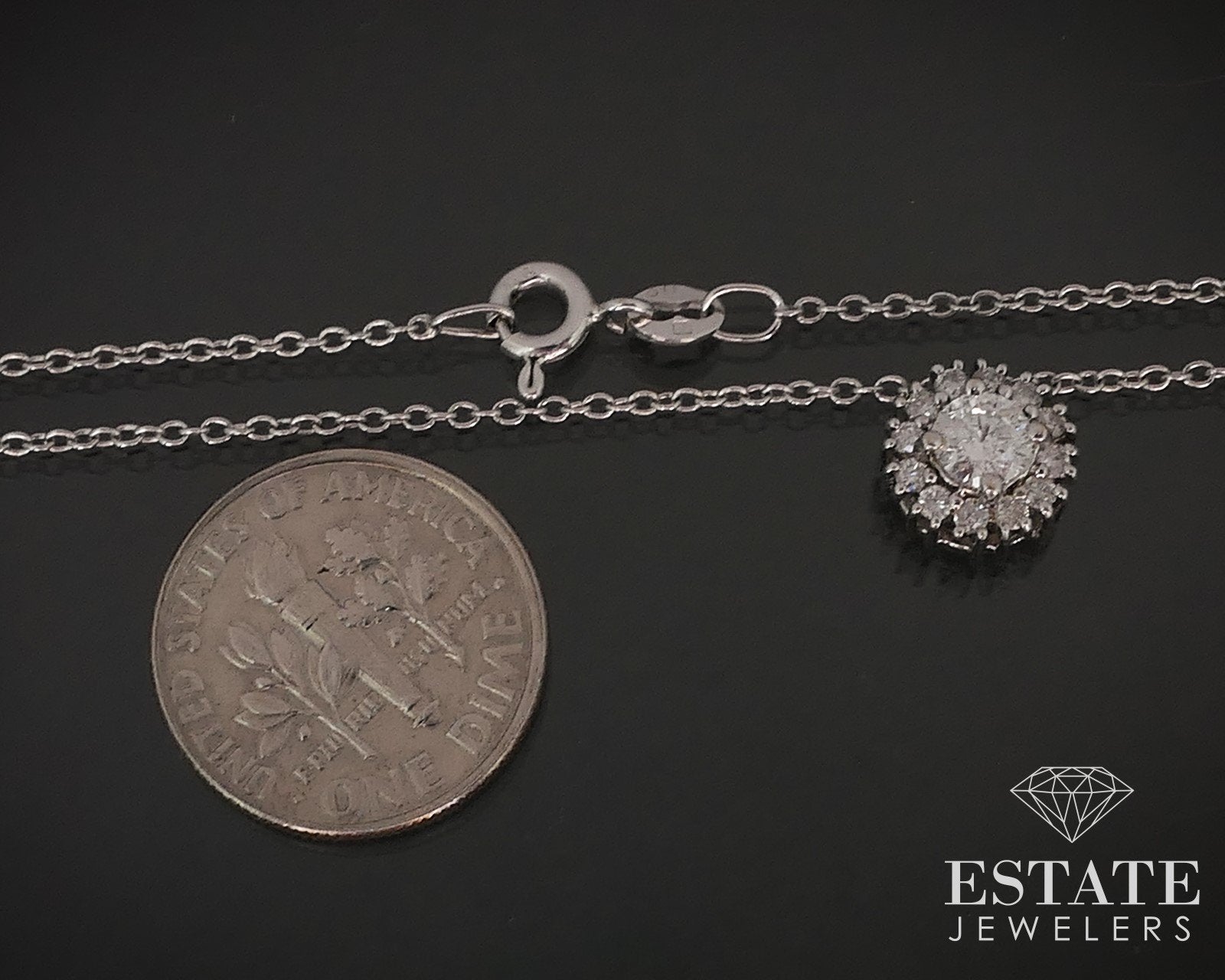 14k White Gold Natural .47ctw Diamond Halo Ladies Necklace 2.5g 18"L i17383