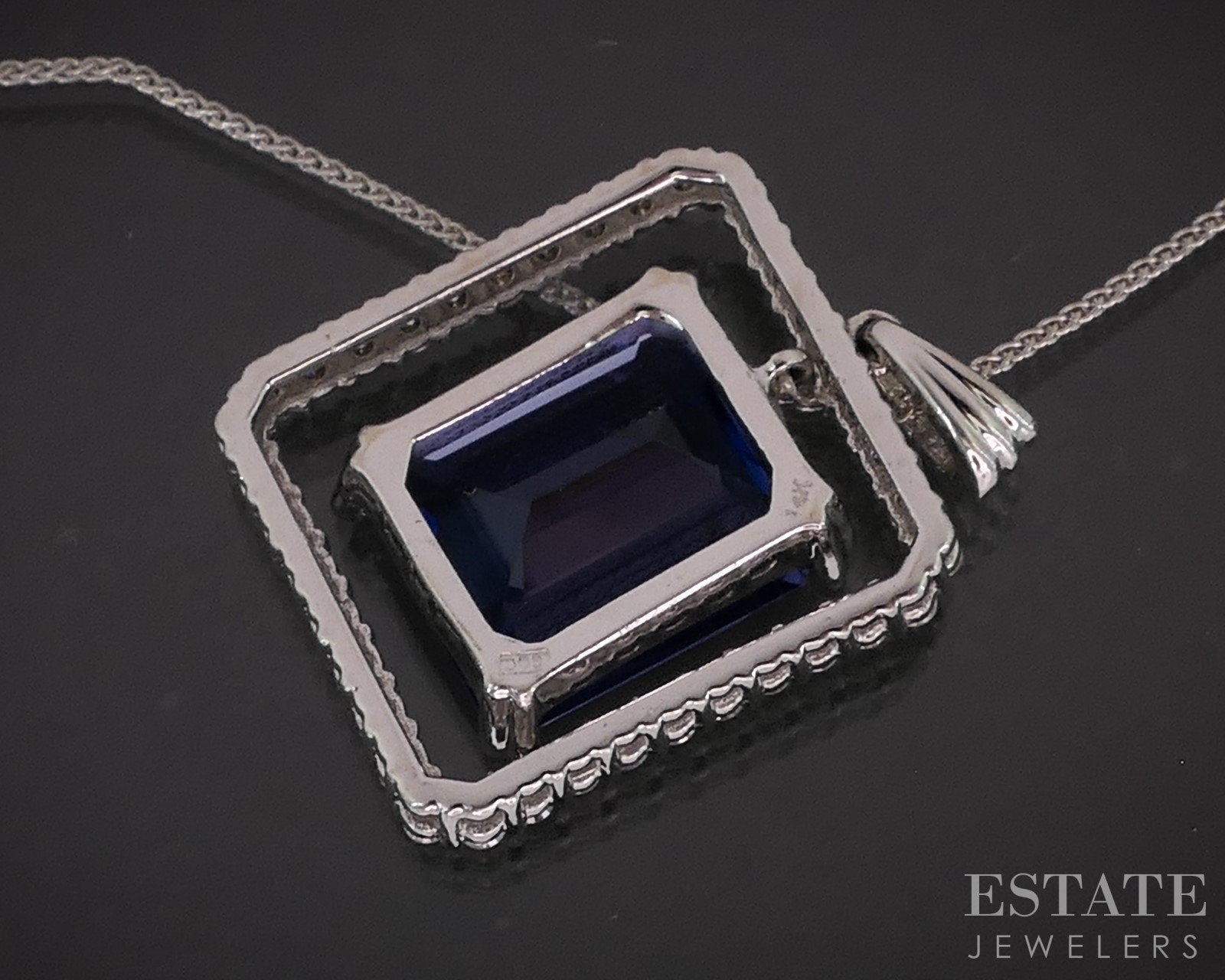 14k White Gold Natural 5ct Tanzanite & Diamond Necklace 5.9g 18"L i19507
