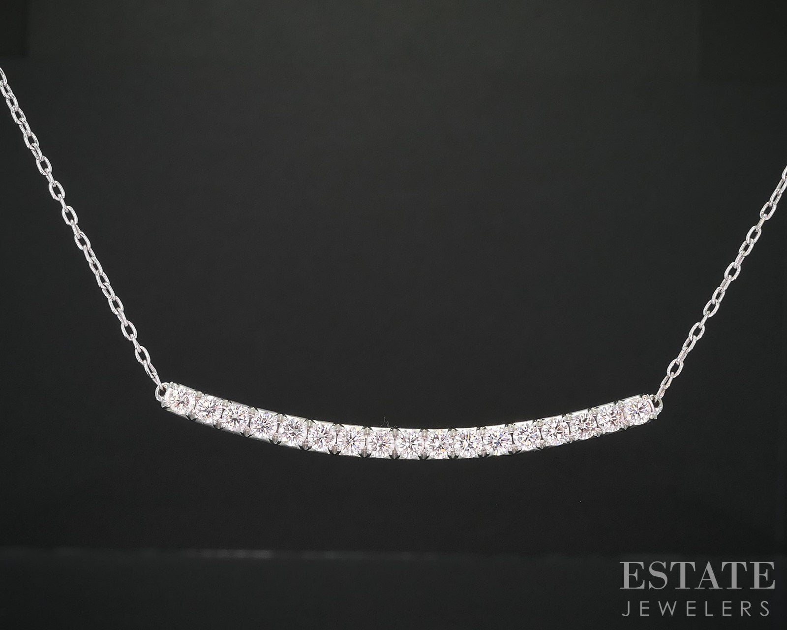 14k White Gold Natural .75ctw Diamond Curved Bar Ladies Necklace 4g 22"L i19211