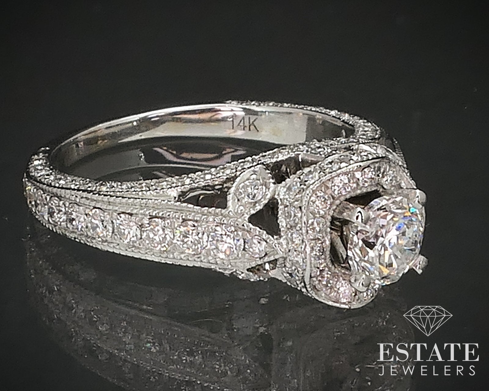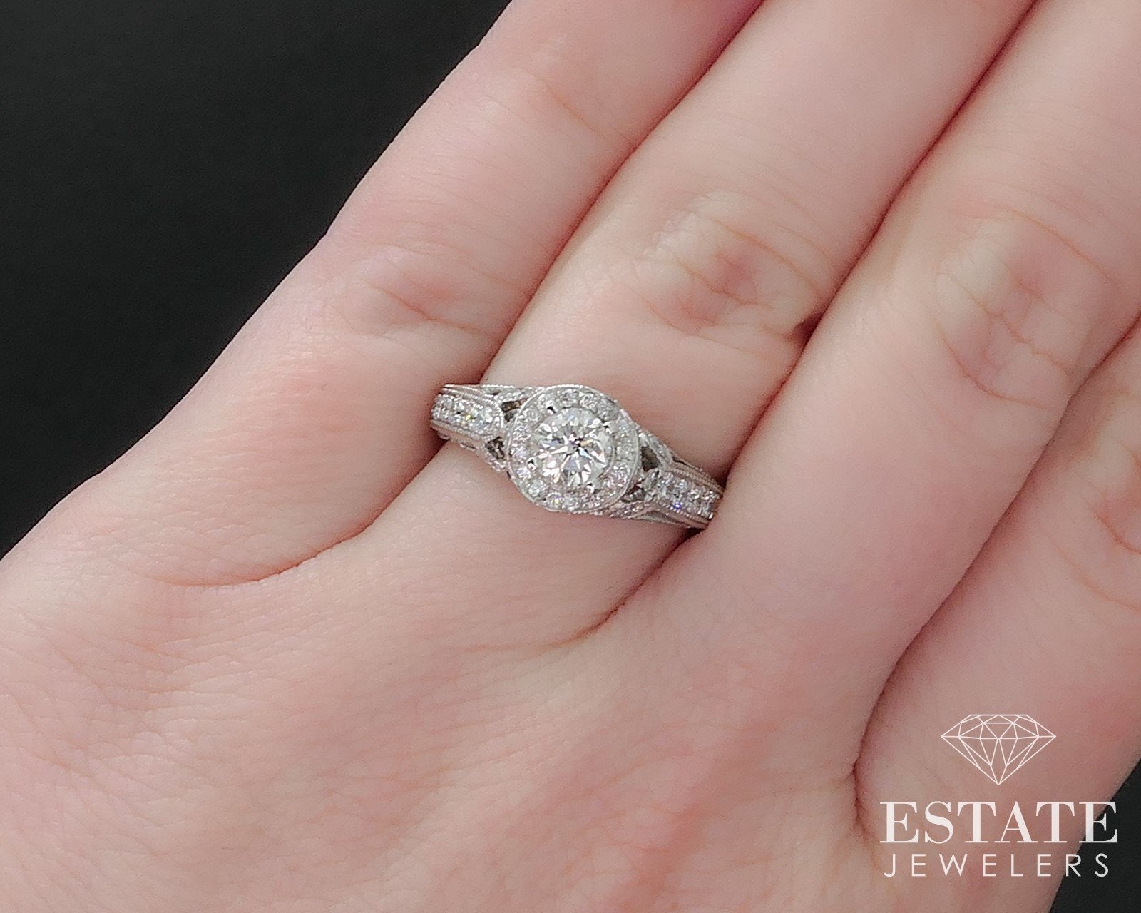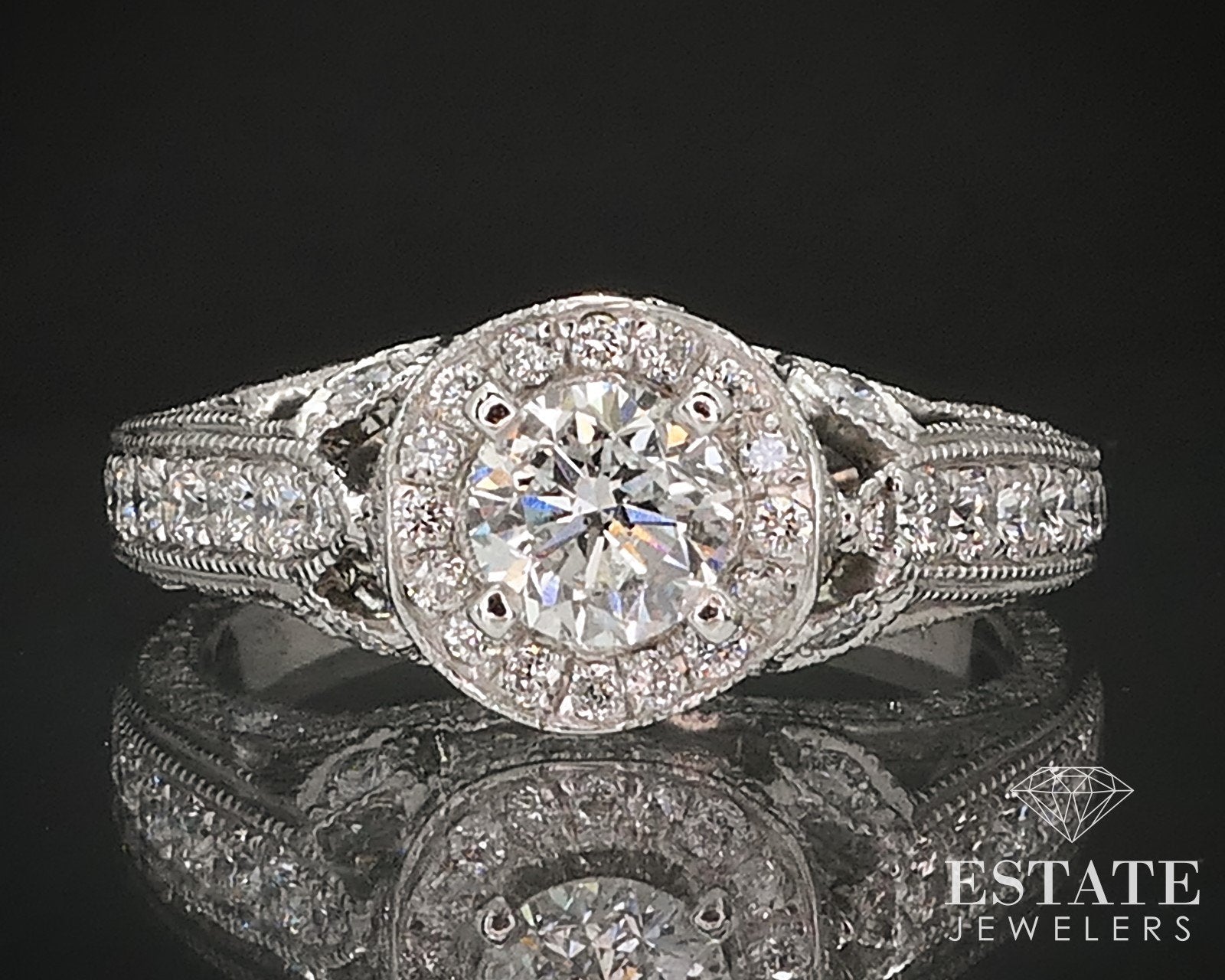 14K White Gold Natural .80ctw Diamond Neil Lane Halo Engagement Ring 4.2g i17441