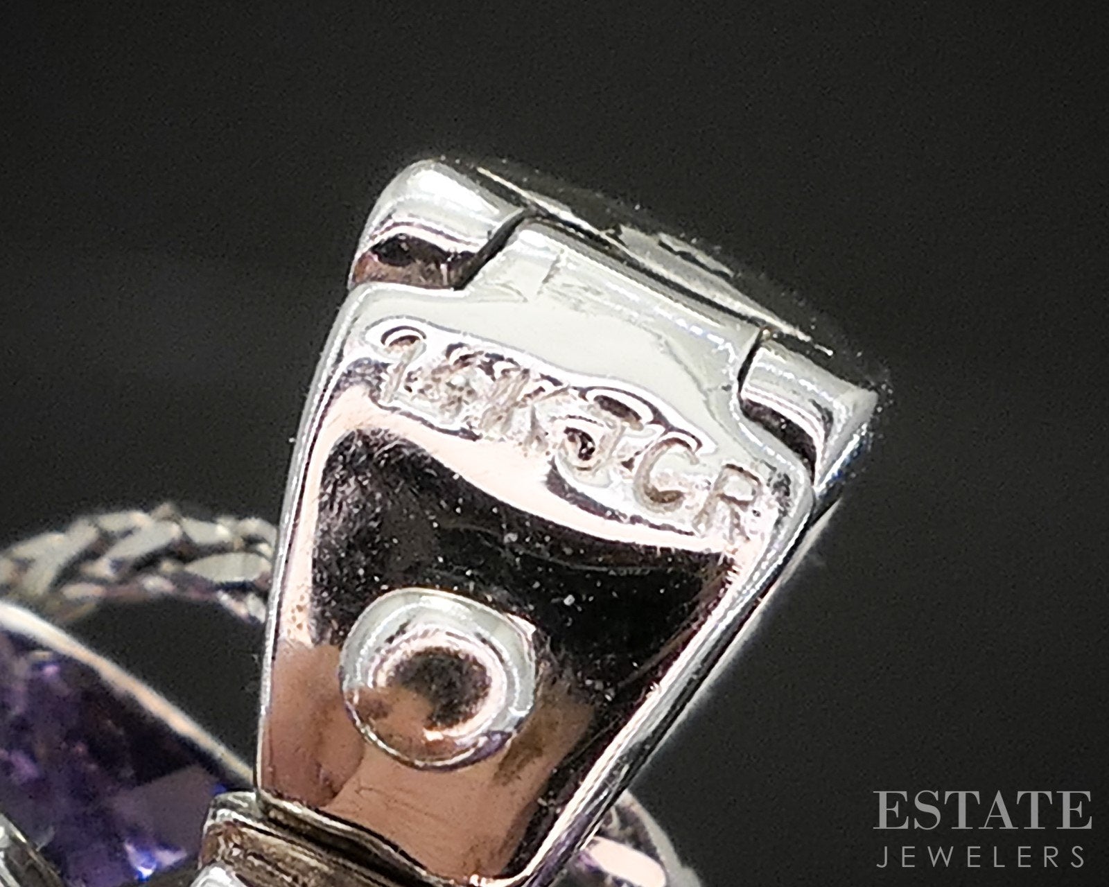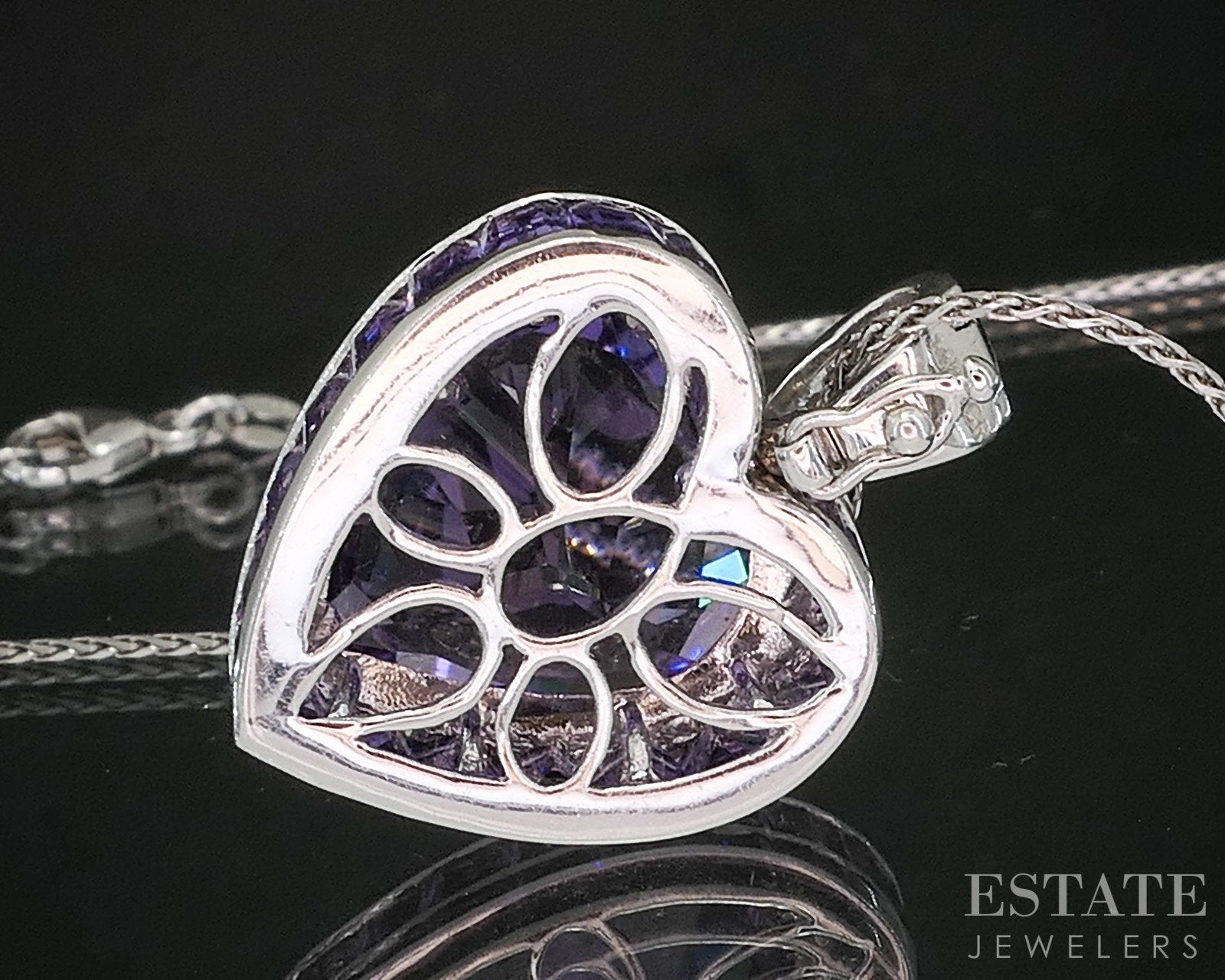 14k White Gold Natural Amethyst & Diamond Heart Necklace 10.6g 16"L p18347