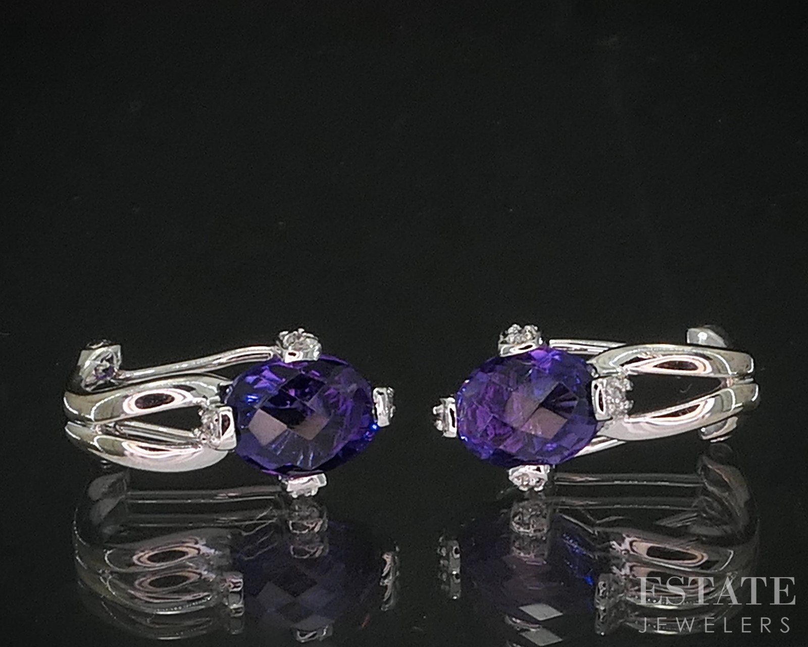 14k White Gold Natural Amethyst & Diamond Omega Back Earrings 3.7g i20434