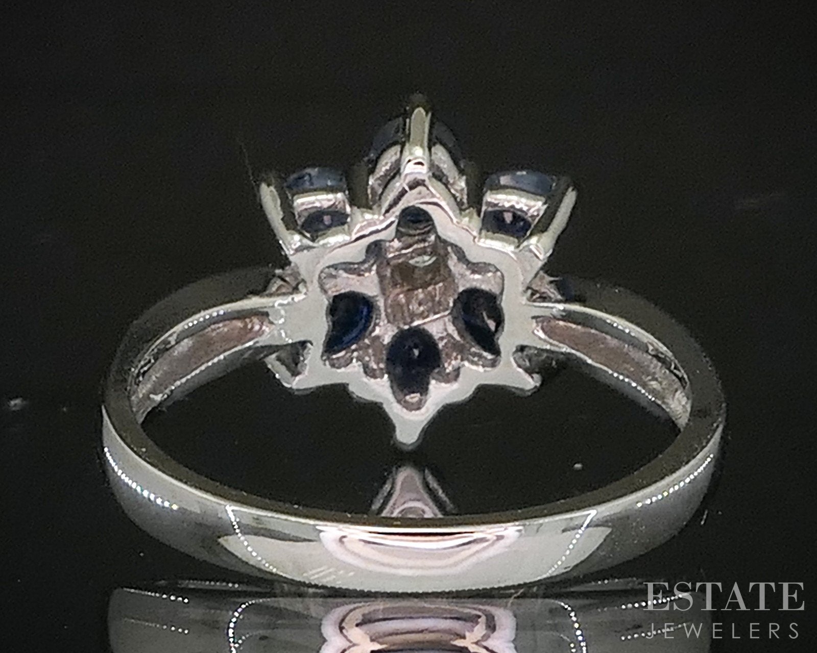 14k White Gold Natural Blue Sapphire & Diamond Flower Ladies Ring 3.7g i20159