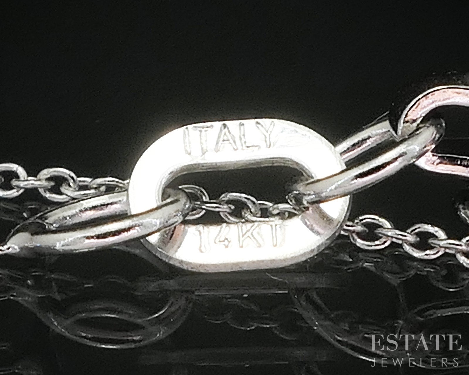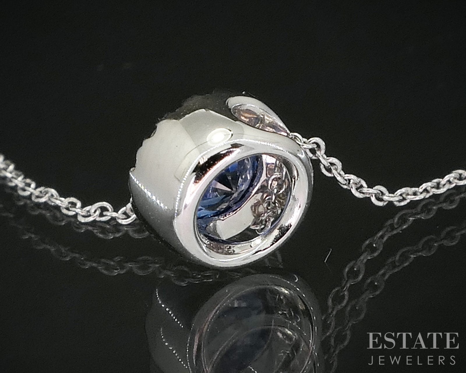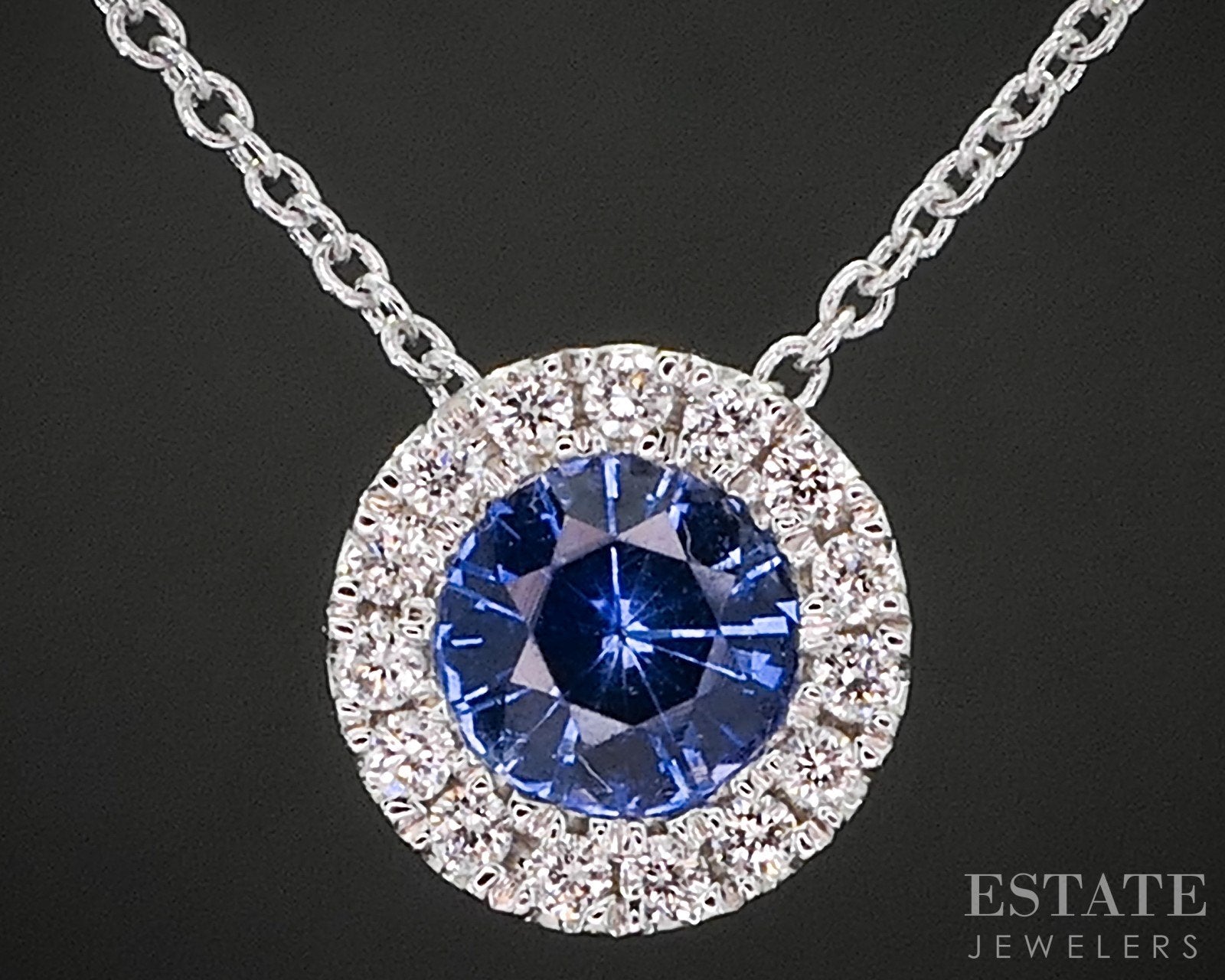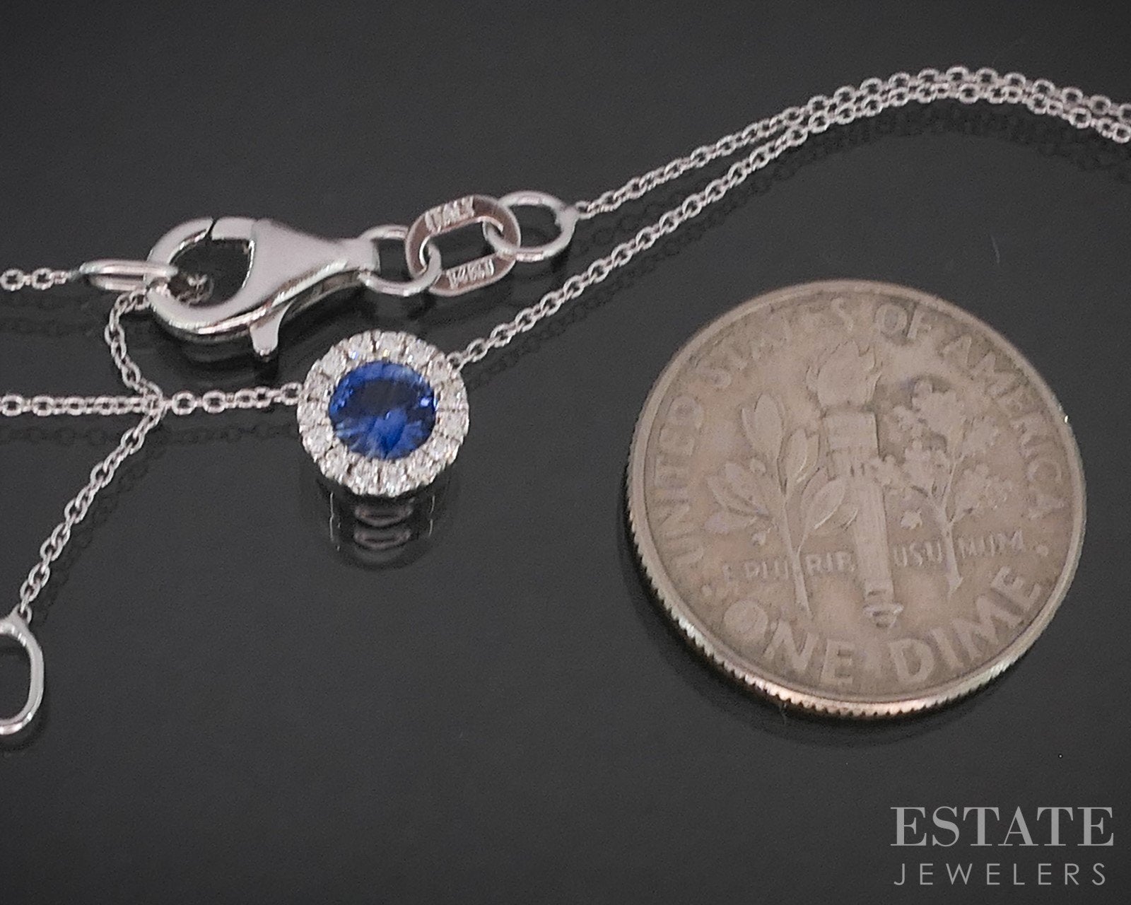 14k White Gold Natural Blue Sapphire & Diamond Halo Necklace 1.8g 18"L i20048