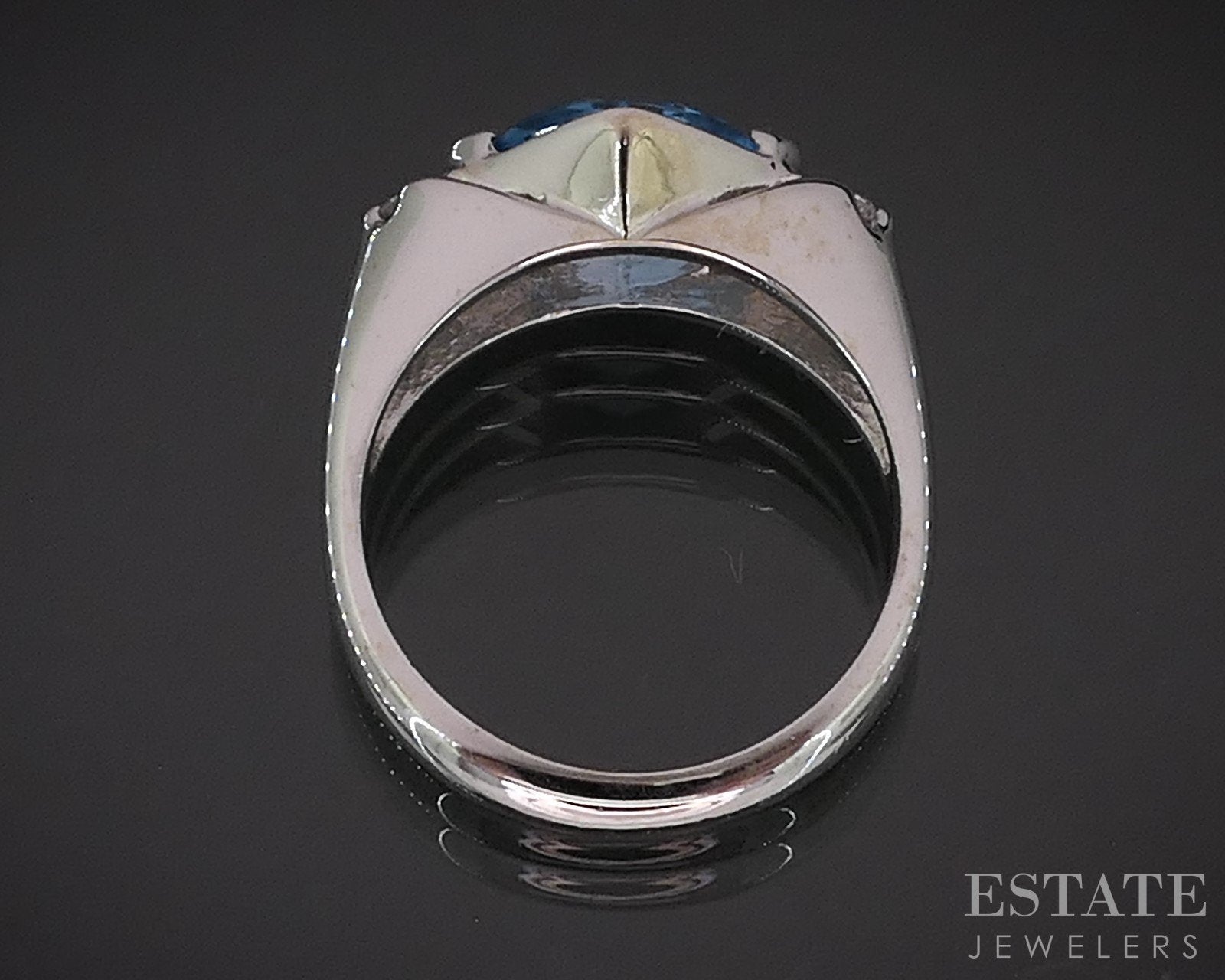 14k White Gold Natural Blue Topaz & Diamond Ladies Band Ring 5.2g i19248