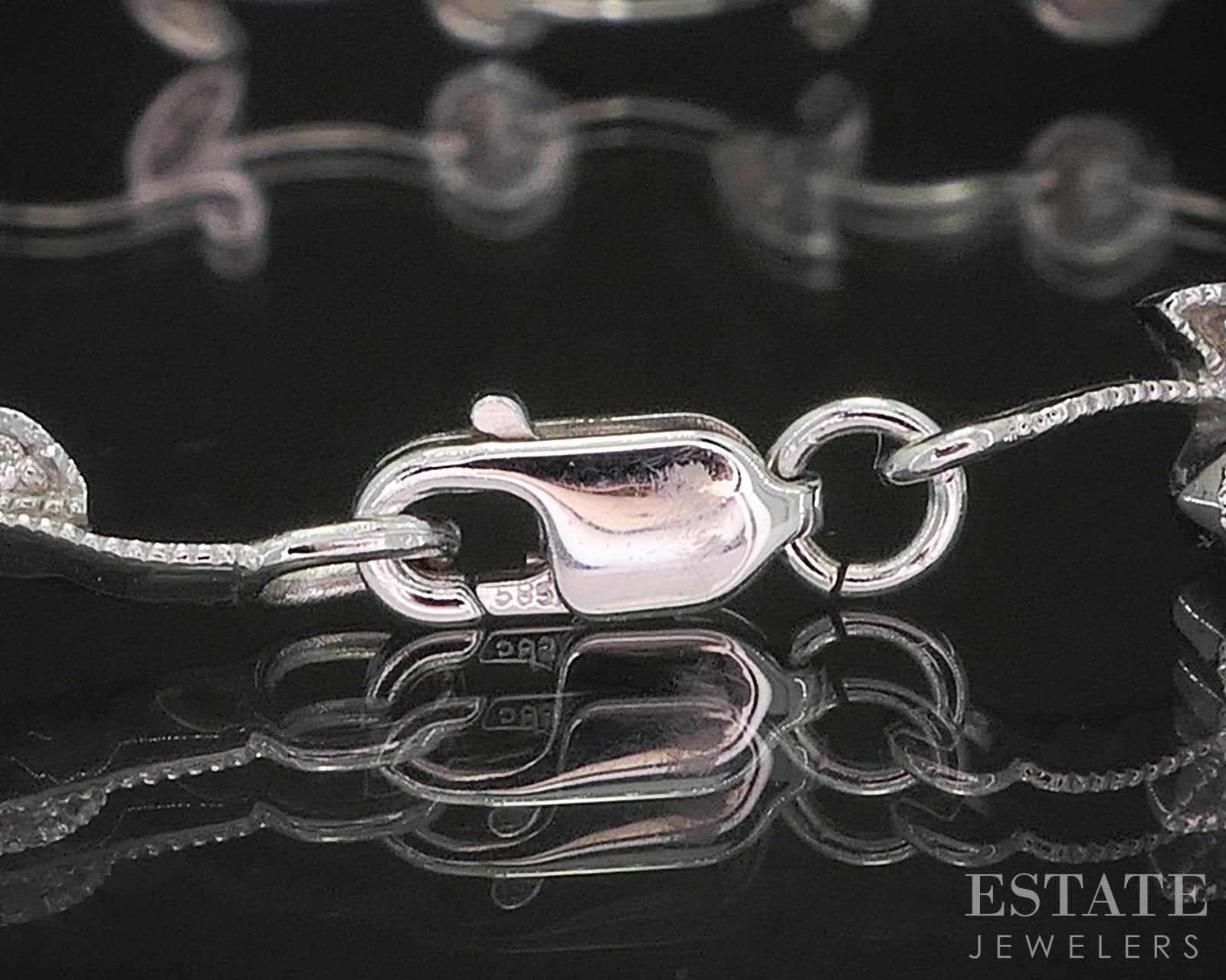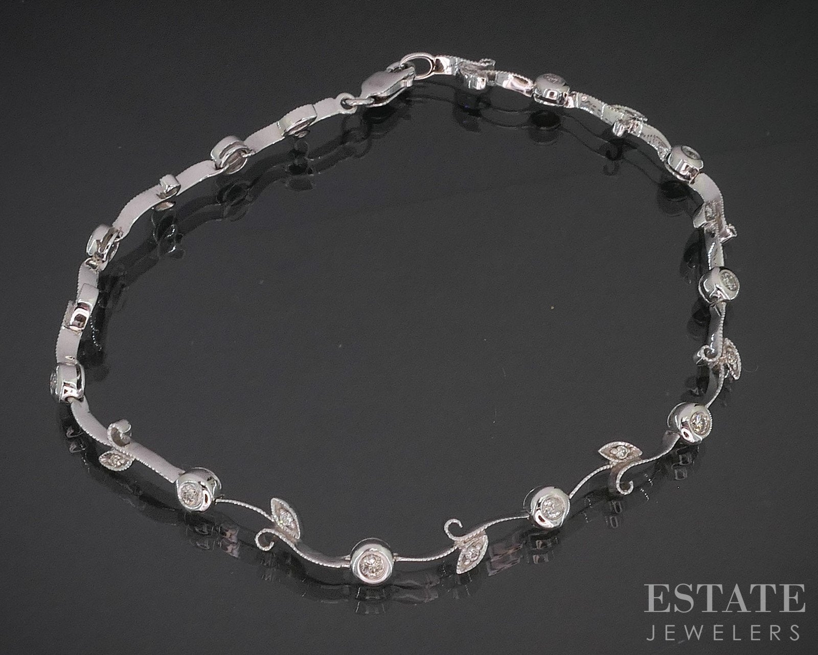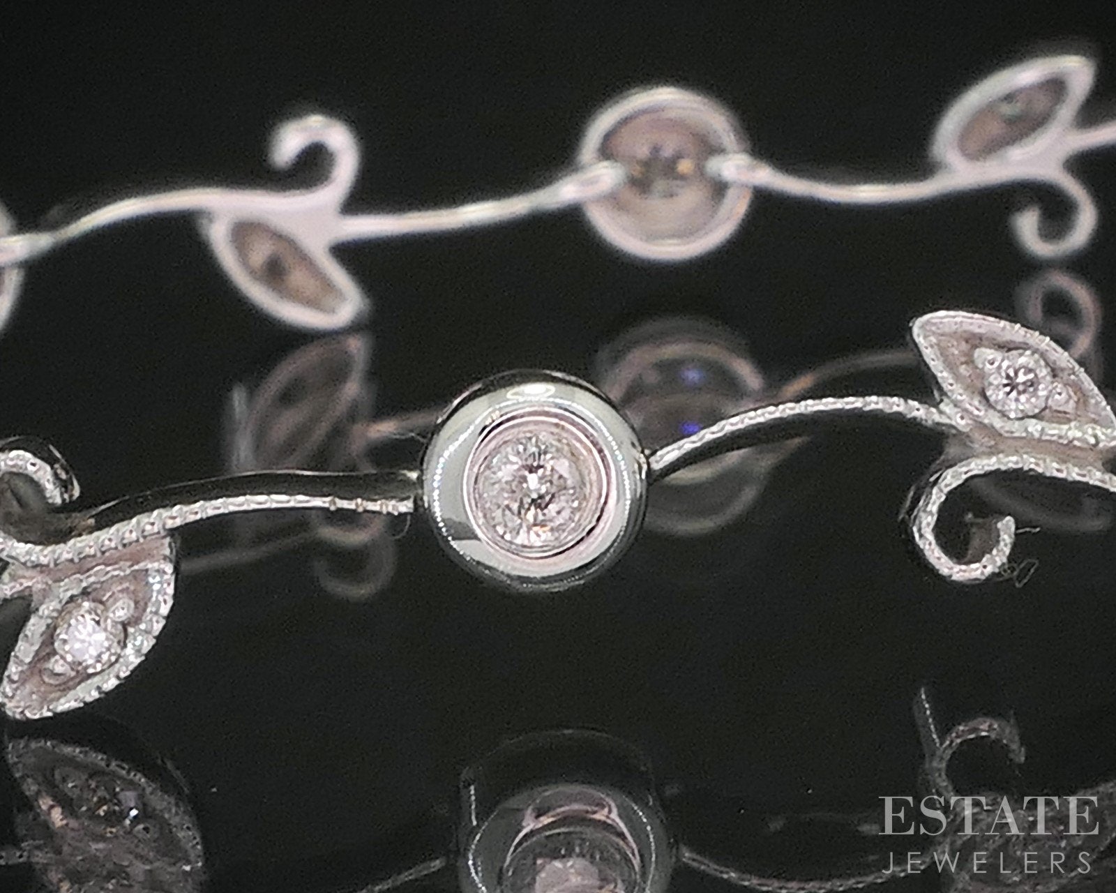 14k White Gold Natural Diamond Floral Vine Tennis Bracelet 5.4g 7.5"L i20097b