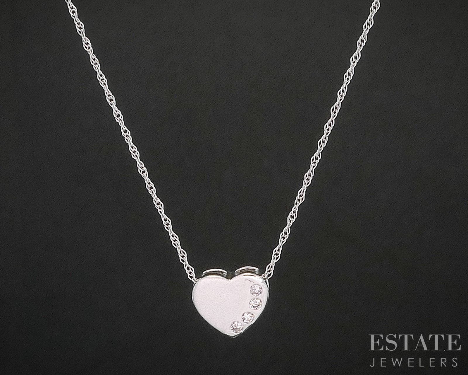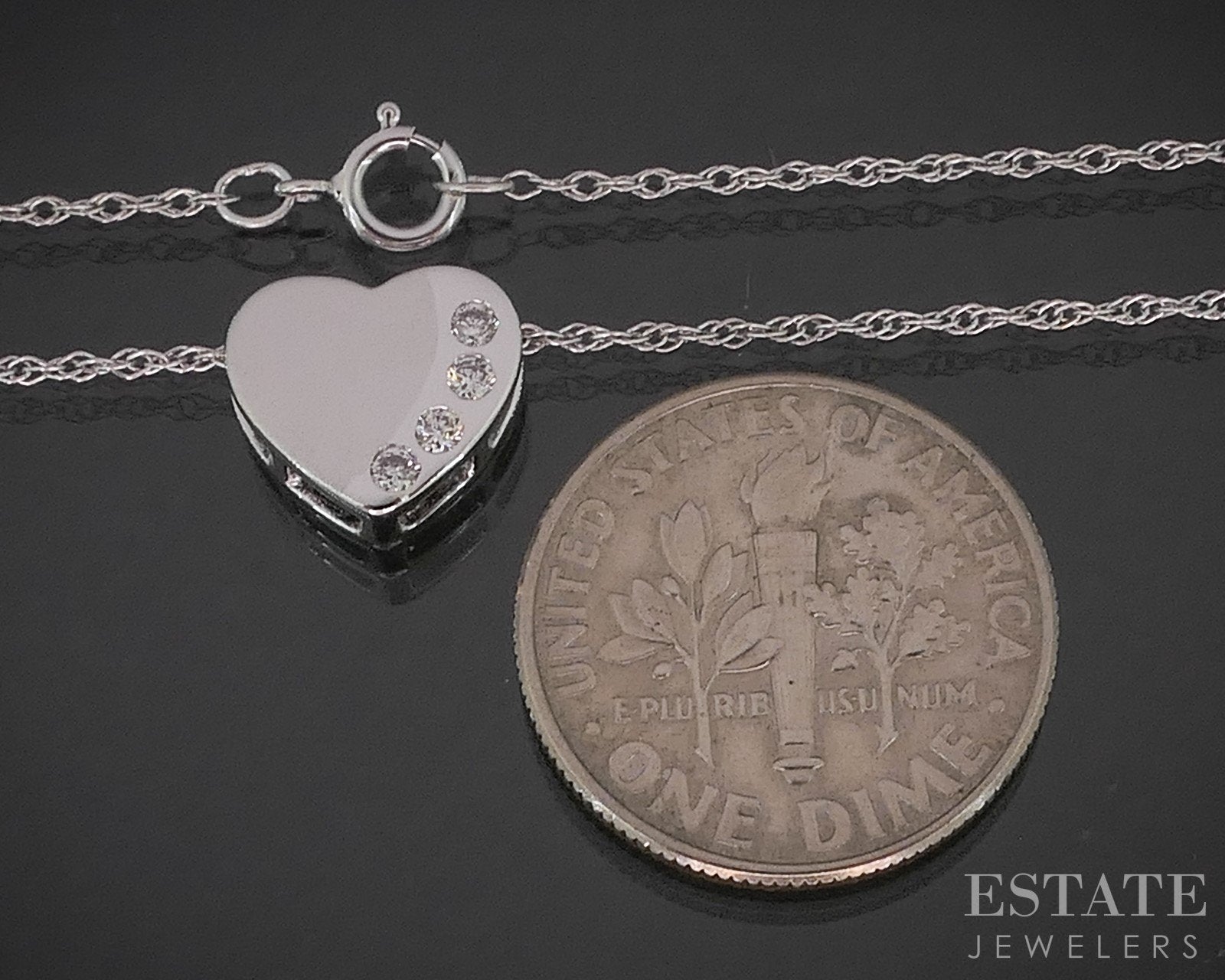 14k White Gold Natural Diamond Heart Ladies Necklace 1.9g 18"L i20108b