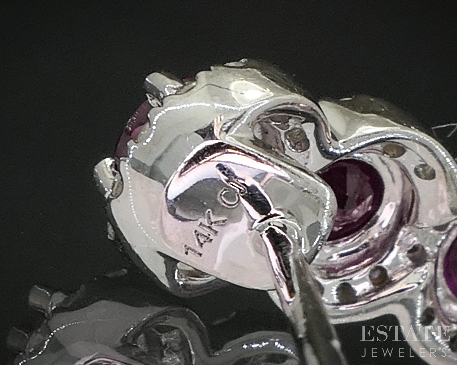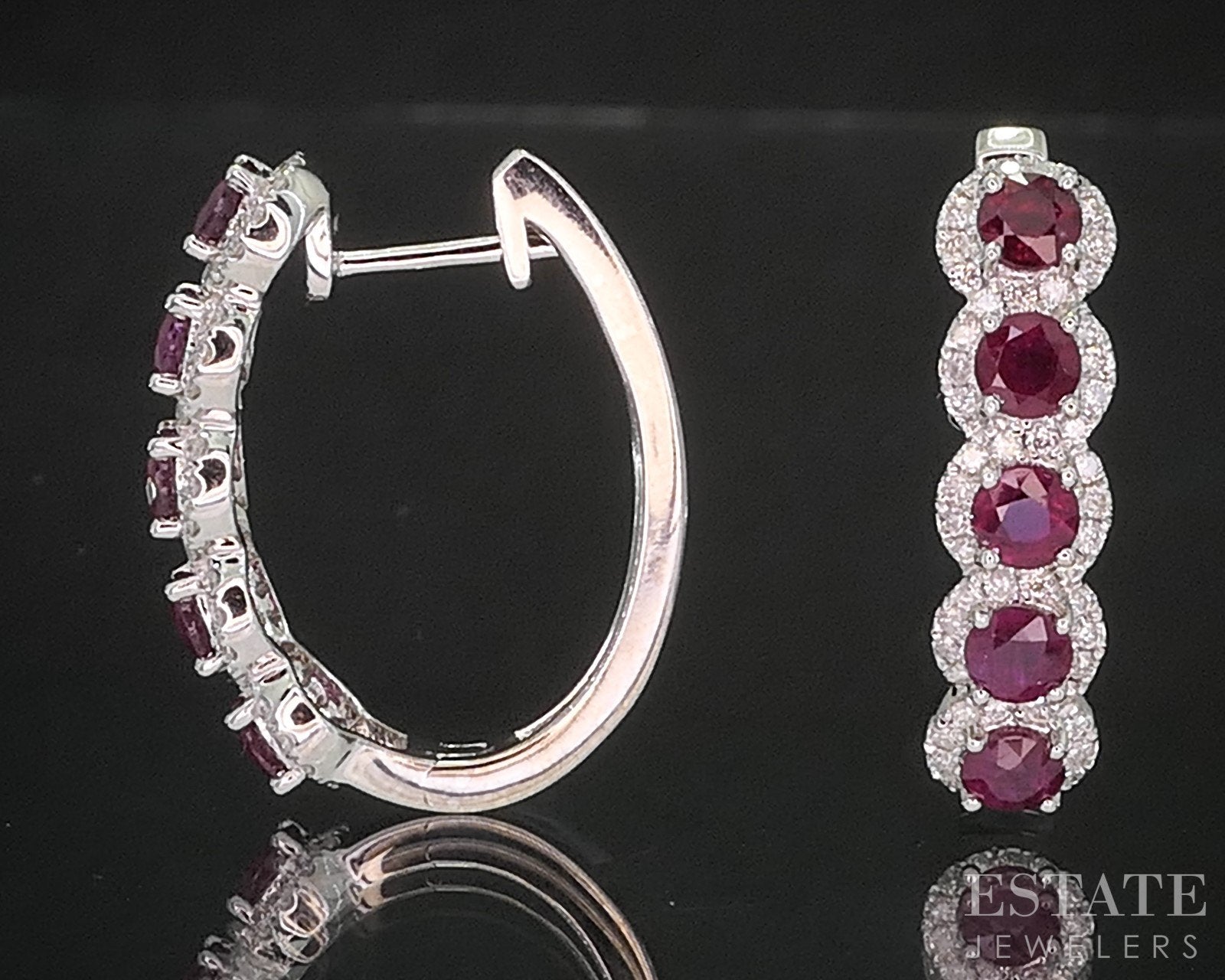 14k White Gold Natural Ruby & Diamond Hoop Ladies Earrings 6.4g i20307