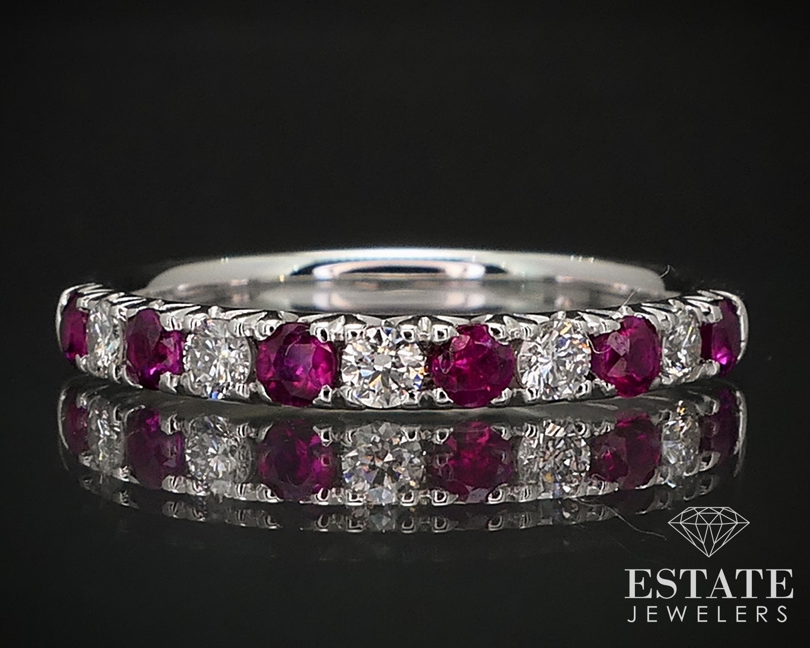14k White Gold Natural Ruby & Diamond Ladies Band Ring 2.4g i16828