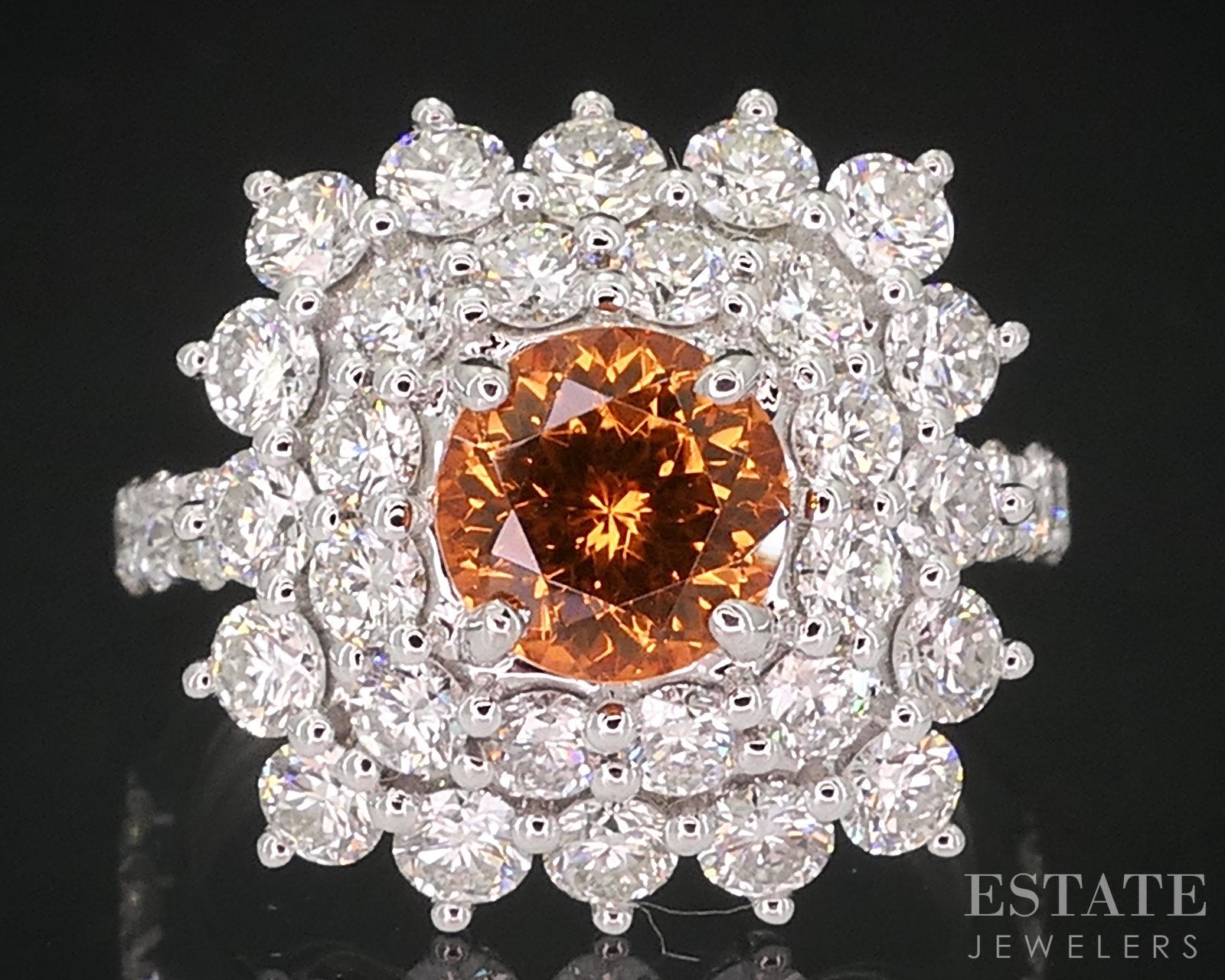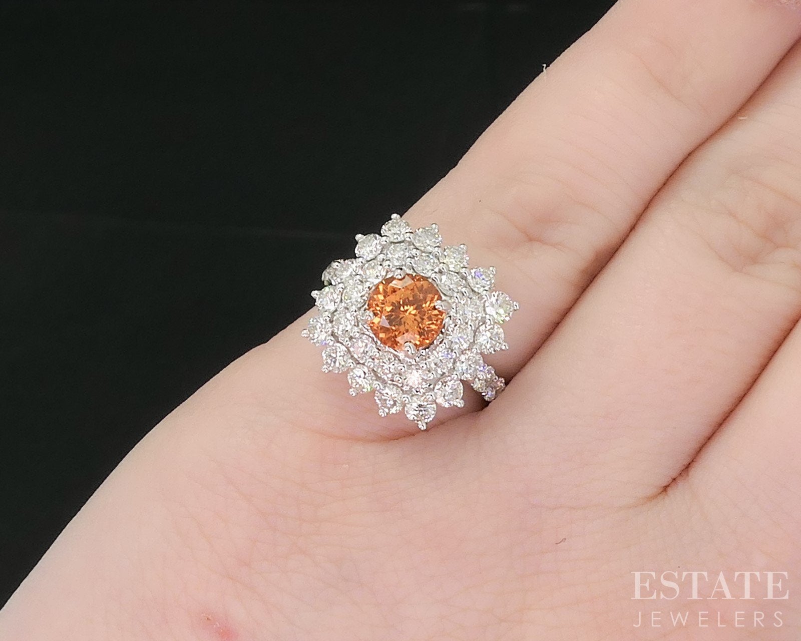 14k White Gold Natural Spessartine Garnet & Diamond Cocktail Ring 4.7g i18875