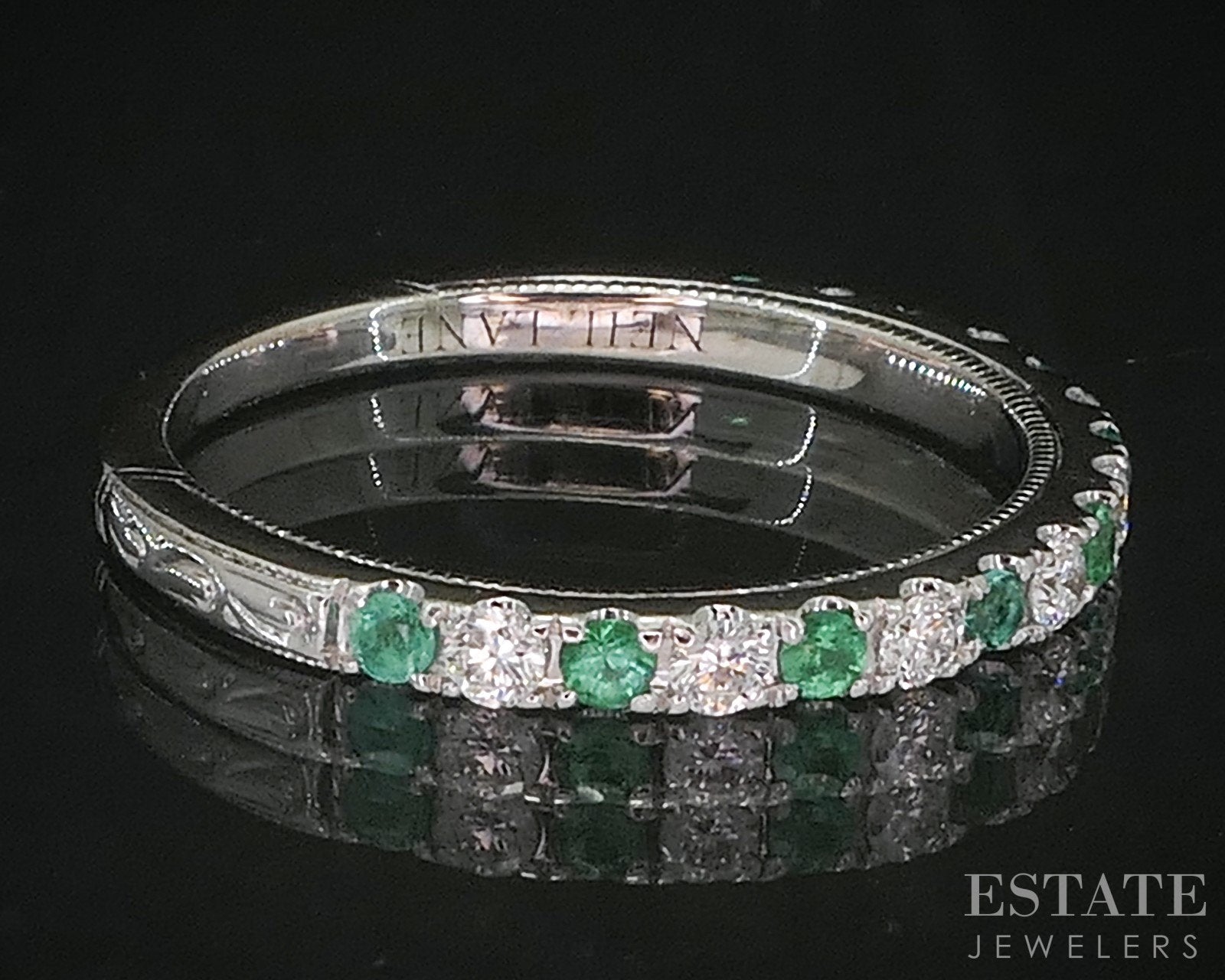 14k White Gold Neil Lane Natural Emerald & Diamond Wedding Band 1.9g i20208