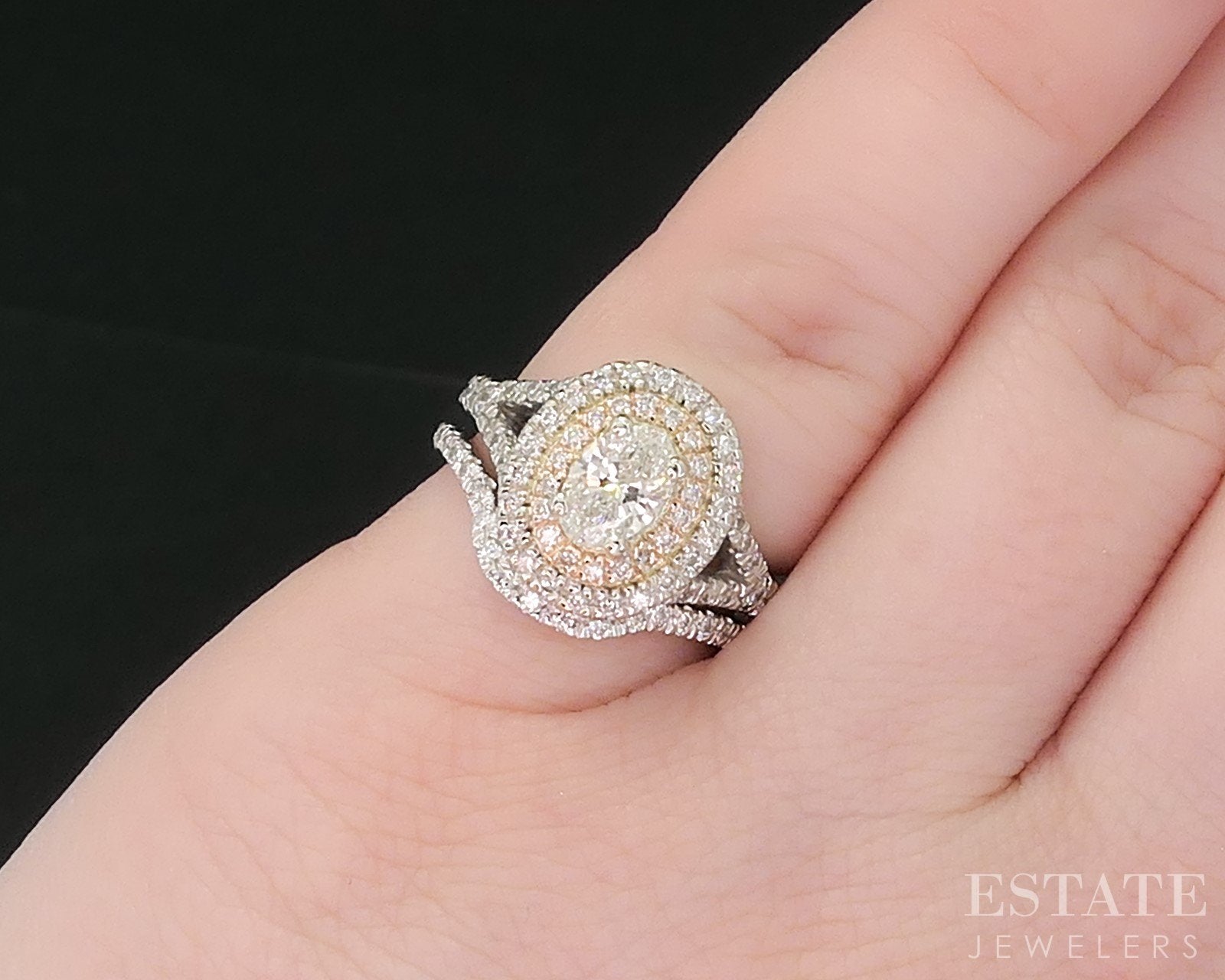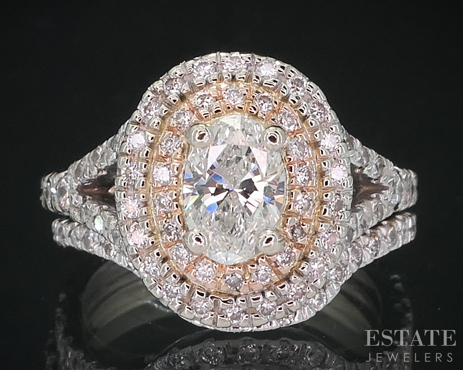 14k White Gold Oval GIA Natural 1.00ctw Diamond Halo Wedding Set 6.4g i18827