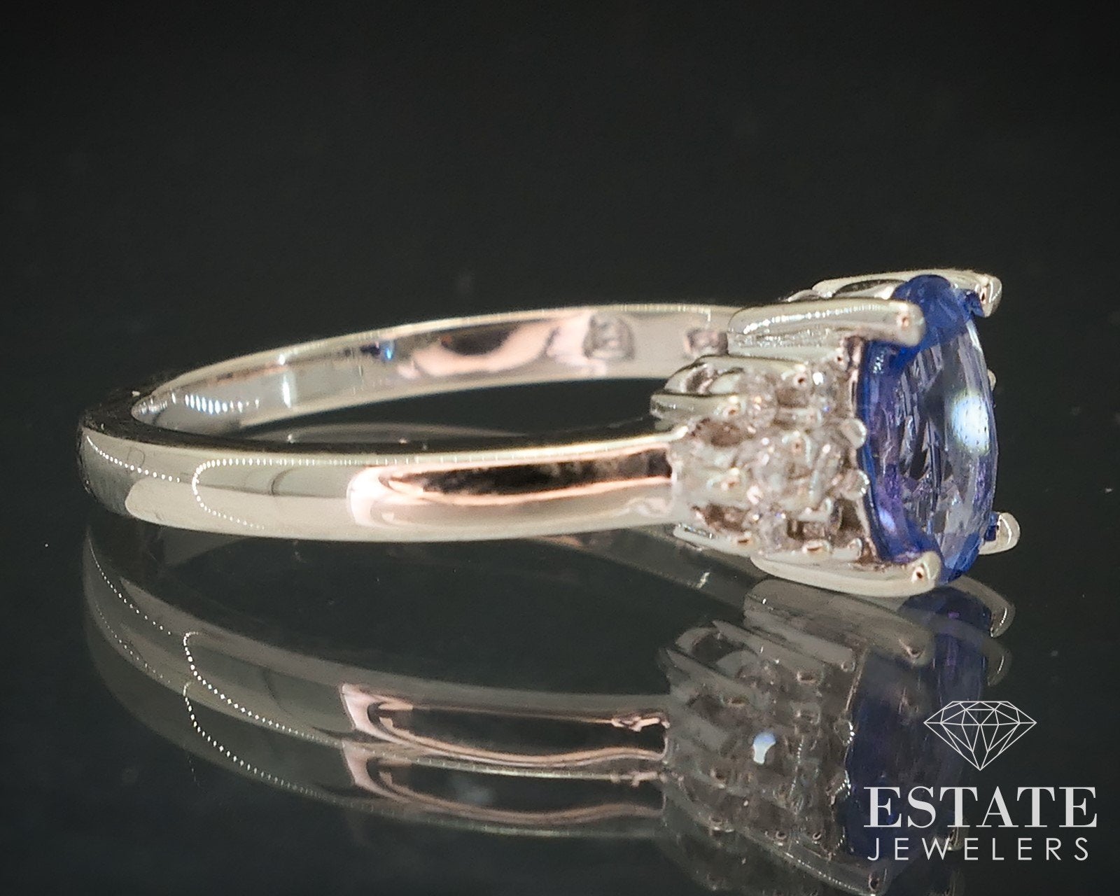 14k White Gold Oval Natural Tanzanite & Diamond Ladies Ring 2.8g i17950b