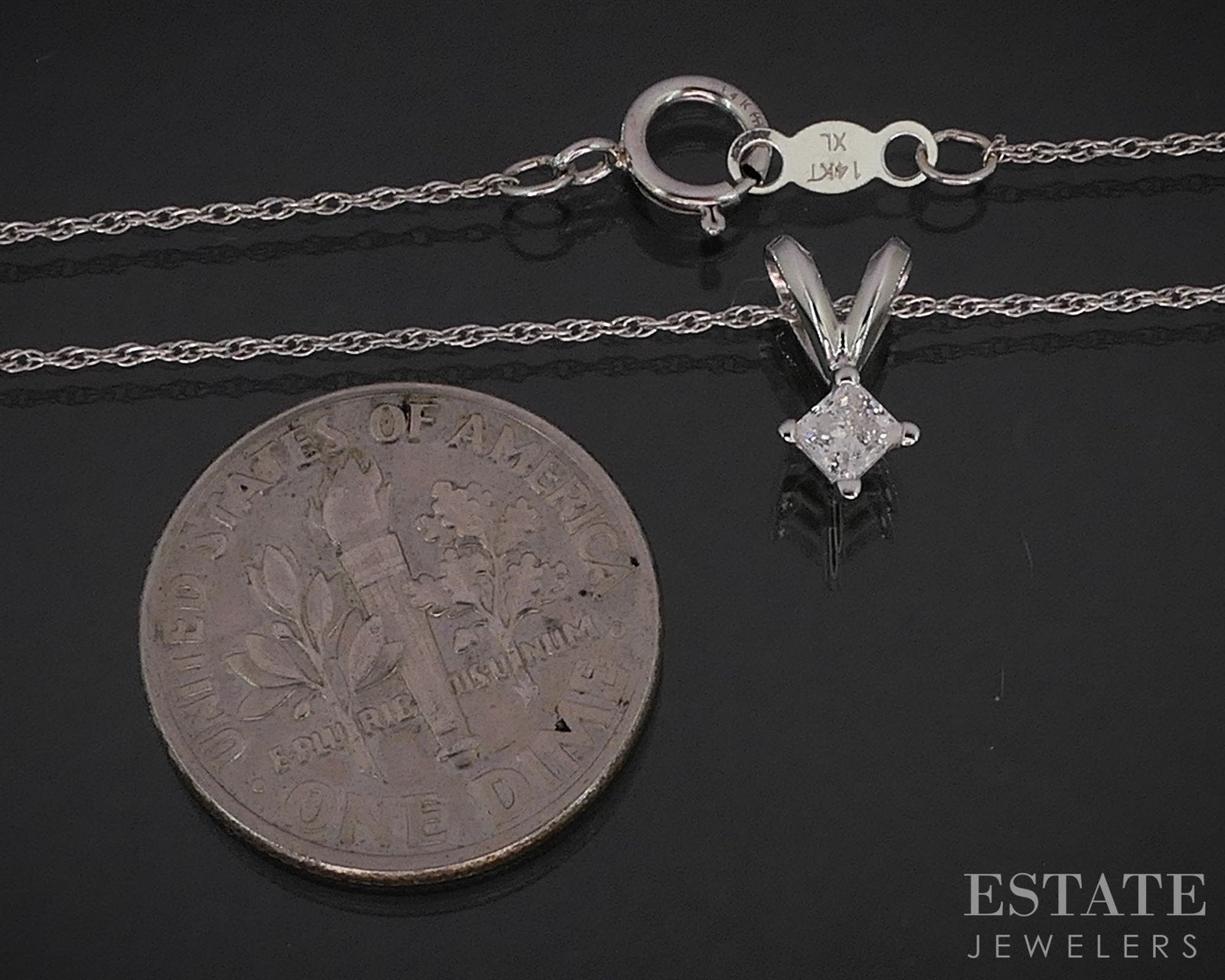 14k White Gold Princess .15ct Diamond Solitaire Necklace 1.1g 18"L i19981b