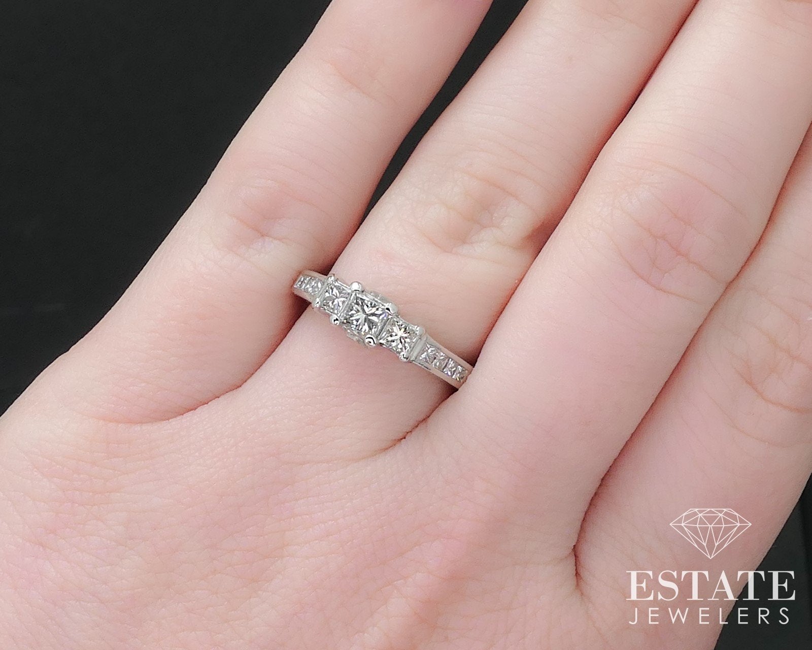 14k White Gold Princess Natural .65ctw Diamond Engagement Ring 3.3g i17107