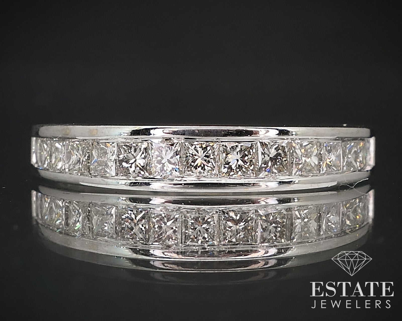14k White Gold Princess Natural .75ctw Diamond Ladies Wedding Band 3.1g i17034