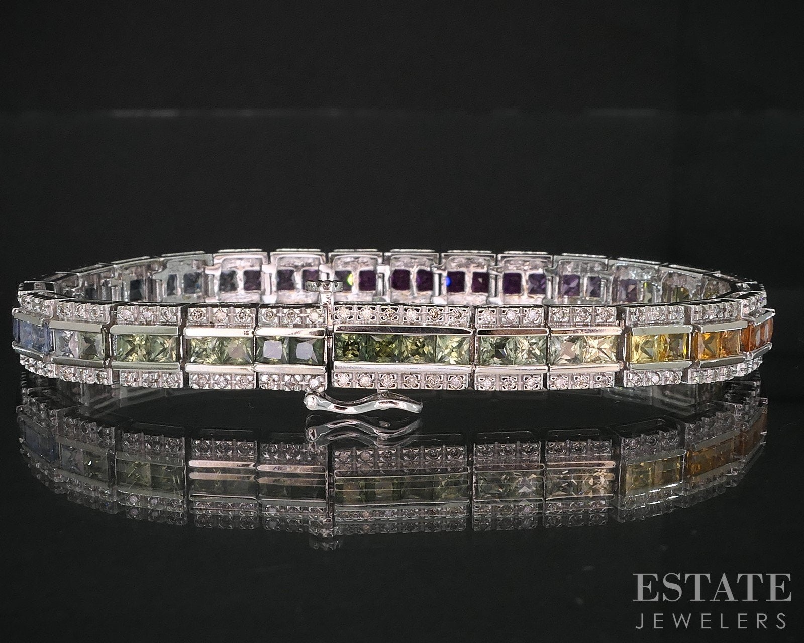 14k White Gold Rainbow Sapphire & Diamond Tennis Bracelet 25.7g 7.25"L i19325