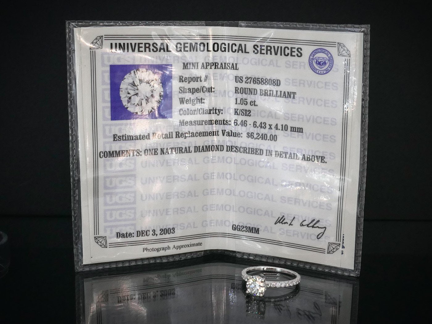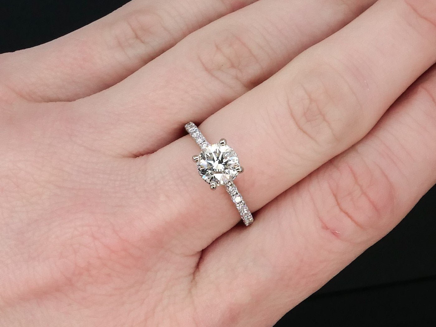 Sparkling ladies engagement ring with a EGL certified 1.05 main diamond. SI2 clarity with K color. .44ct of diamond accents along the band. EGL number US27658808D Stamped 14k .44 SIZE-6.5