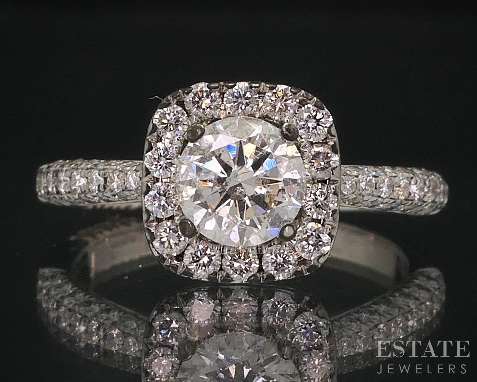 14k White Gold Round Natural 1.03ctw Diamond Halo Engagement Ring 3.5g i18289
