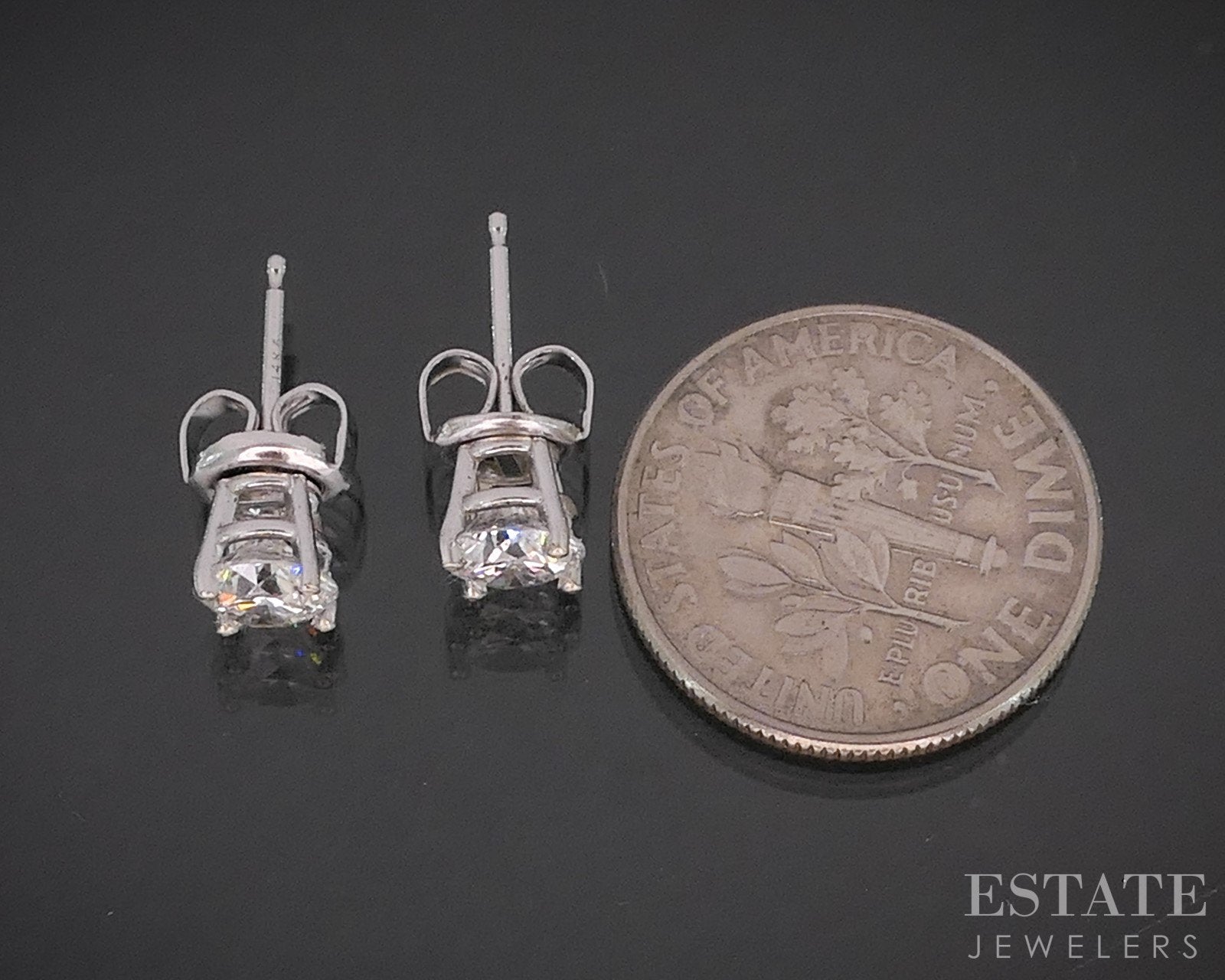 14k White Gold Round Natural 1.04ctw Diamond Stud Earrings i20219