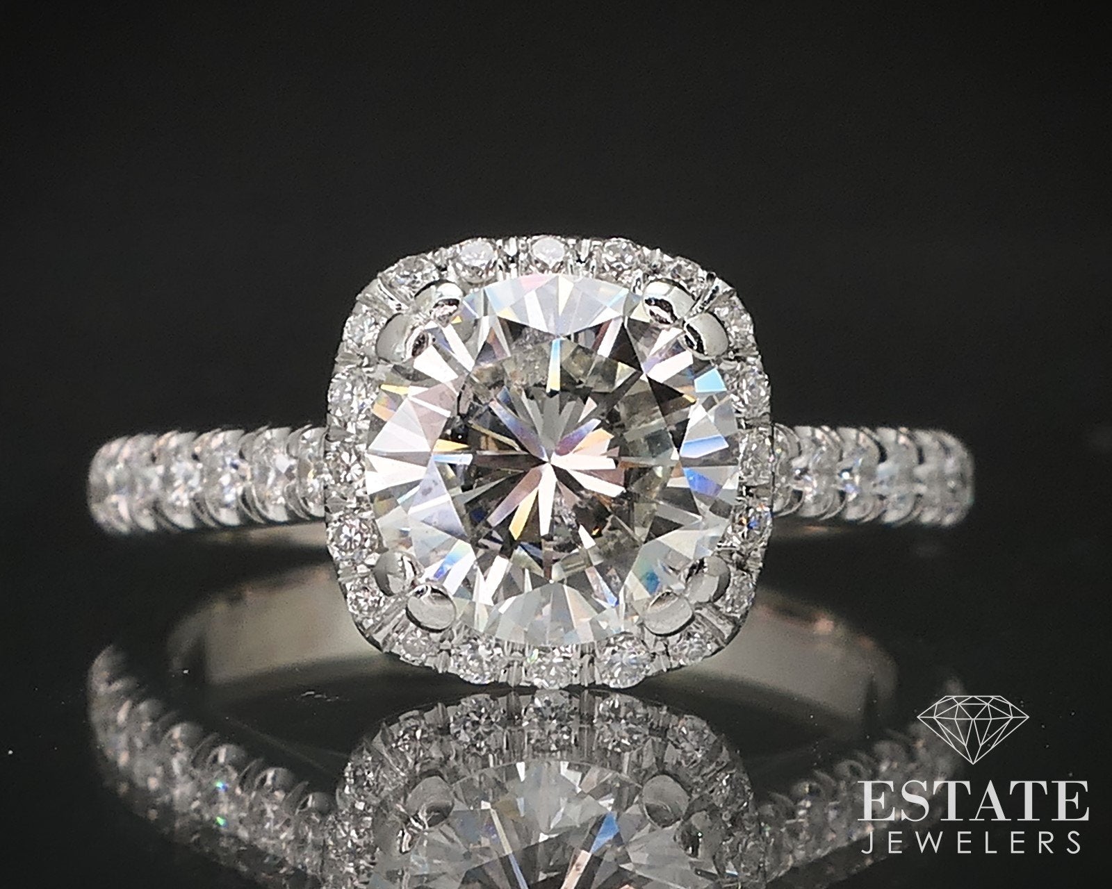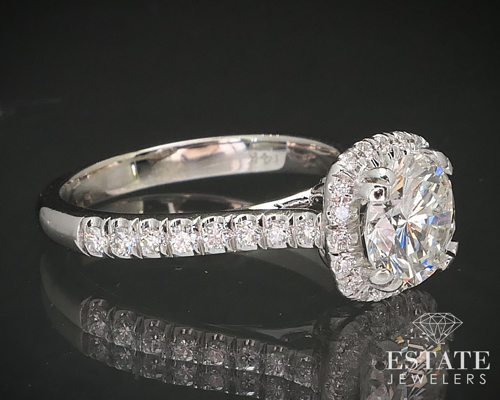 14k White Gold Round Natural 1.76ctw Diamond Halo Engagement Ring 4.2g i17404
