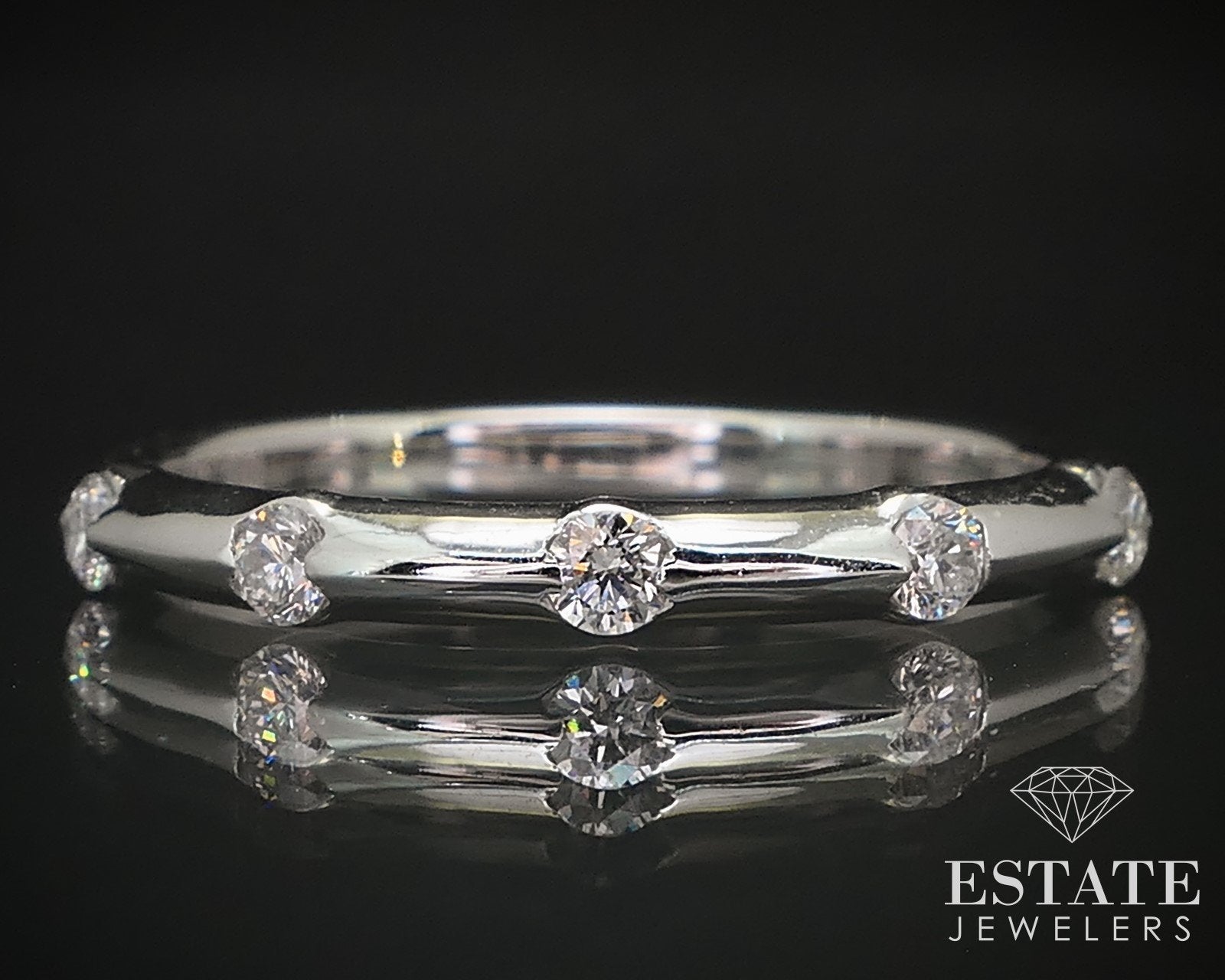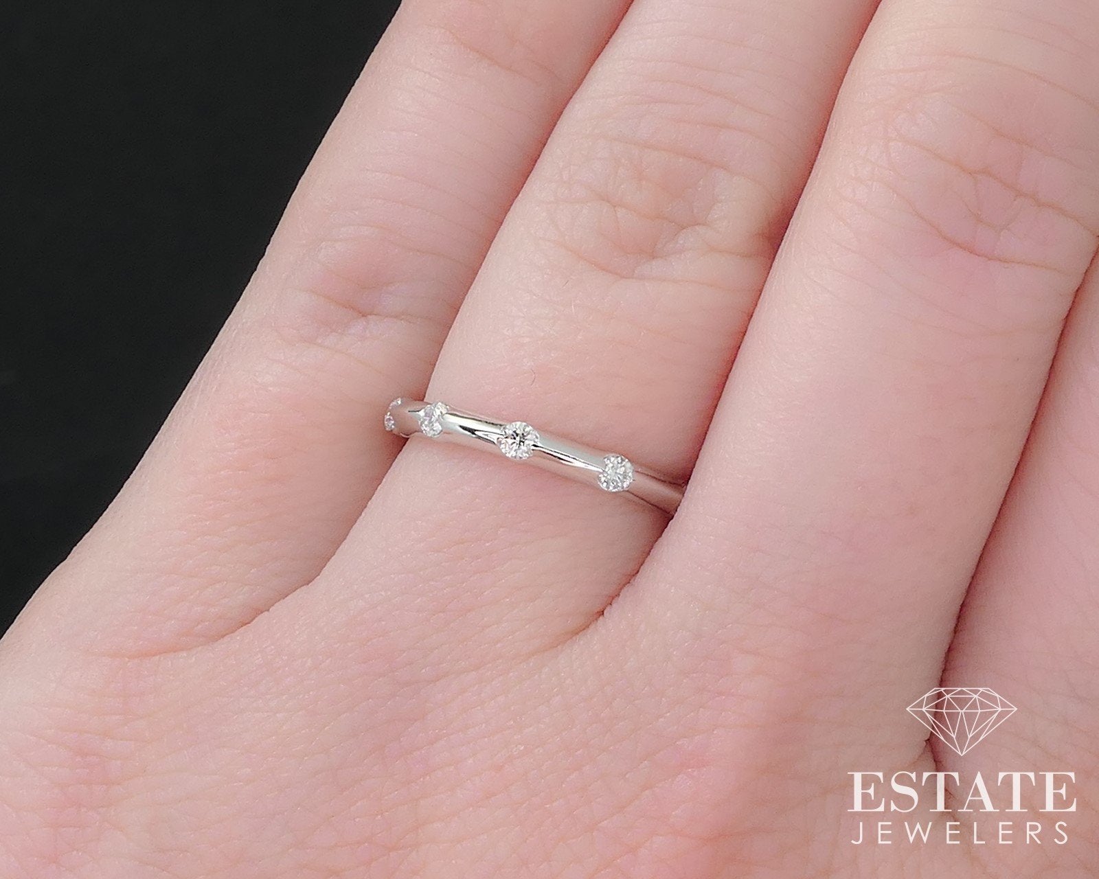 14k White Gold Round Natural .18ctw Diamond Ladies Wedding Band 1.8g i16824