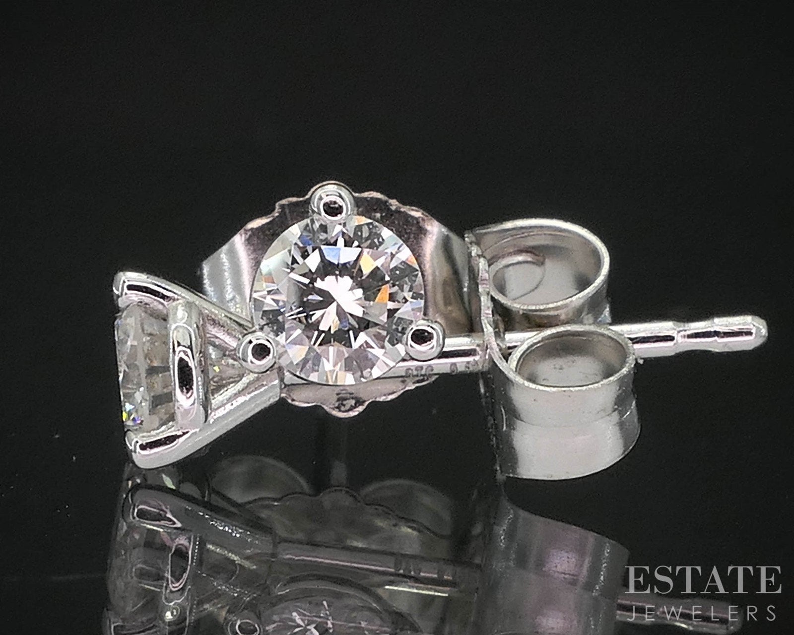 Additional Info: Add a touch of refined brilliance to your jewelry collection with these exquisite white gold Diamond studs. Each earring showcases a dazzling, hand-selected Diamond, expertly set in a classic 3-prong martini-style mounting. Designed to let the stones sit closer to the ear for a sleek, modern profile and maximum sparkle! Crafted in 14K white gold, these studs offer a minimalist yet luxurious look, perfect for everyday wear or special occasions. The martini setting’s open design allows more light to reach the Diamond from all angles, enhancing its natural fire and brilliance.
