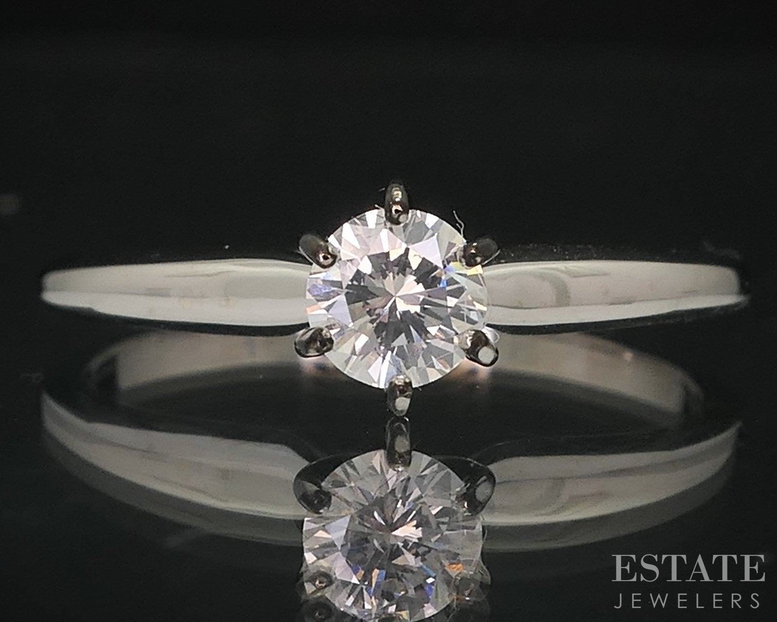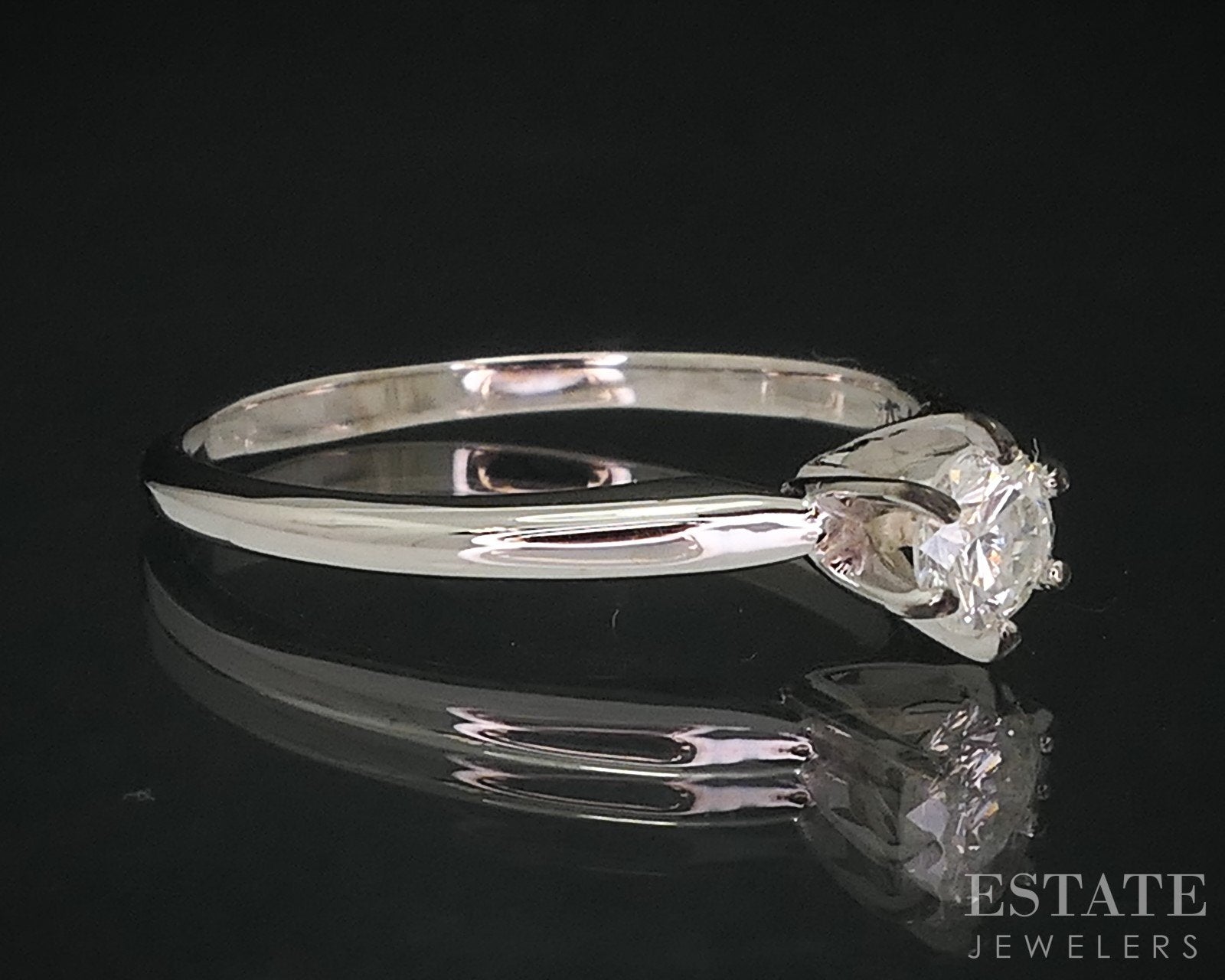 14k White Gold Round Natural .30ct Diamond Solitaire Engagement Ring 2.2g i18288
