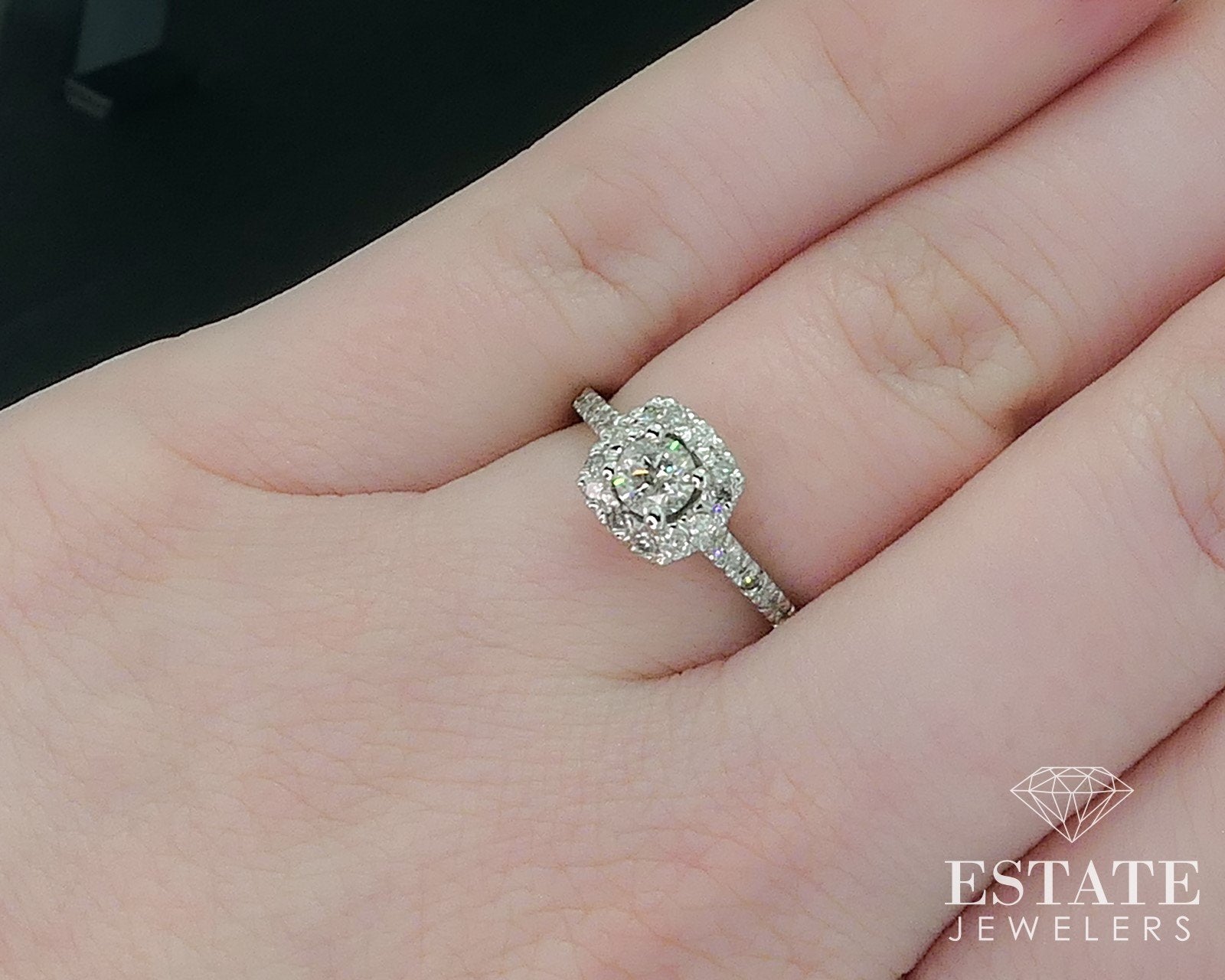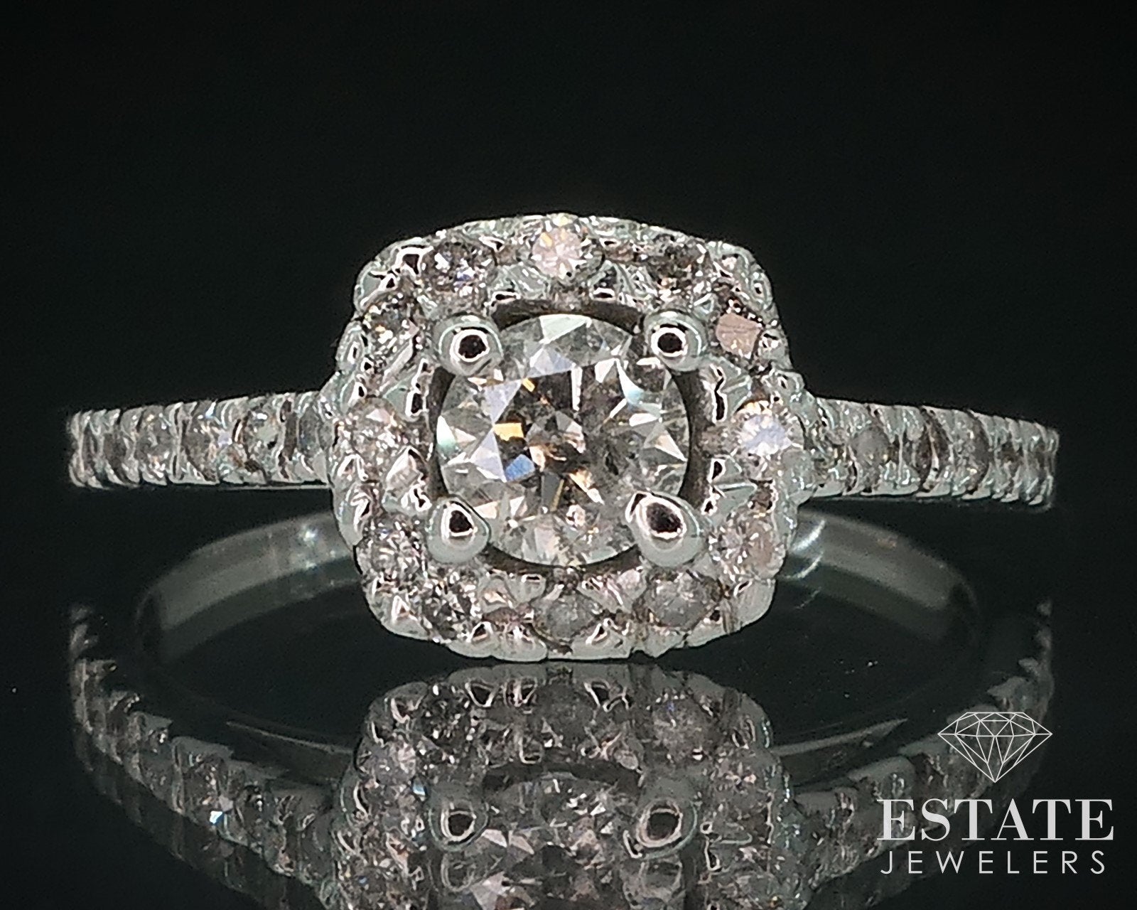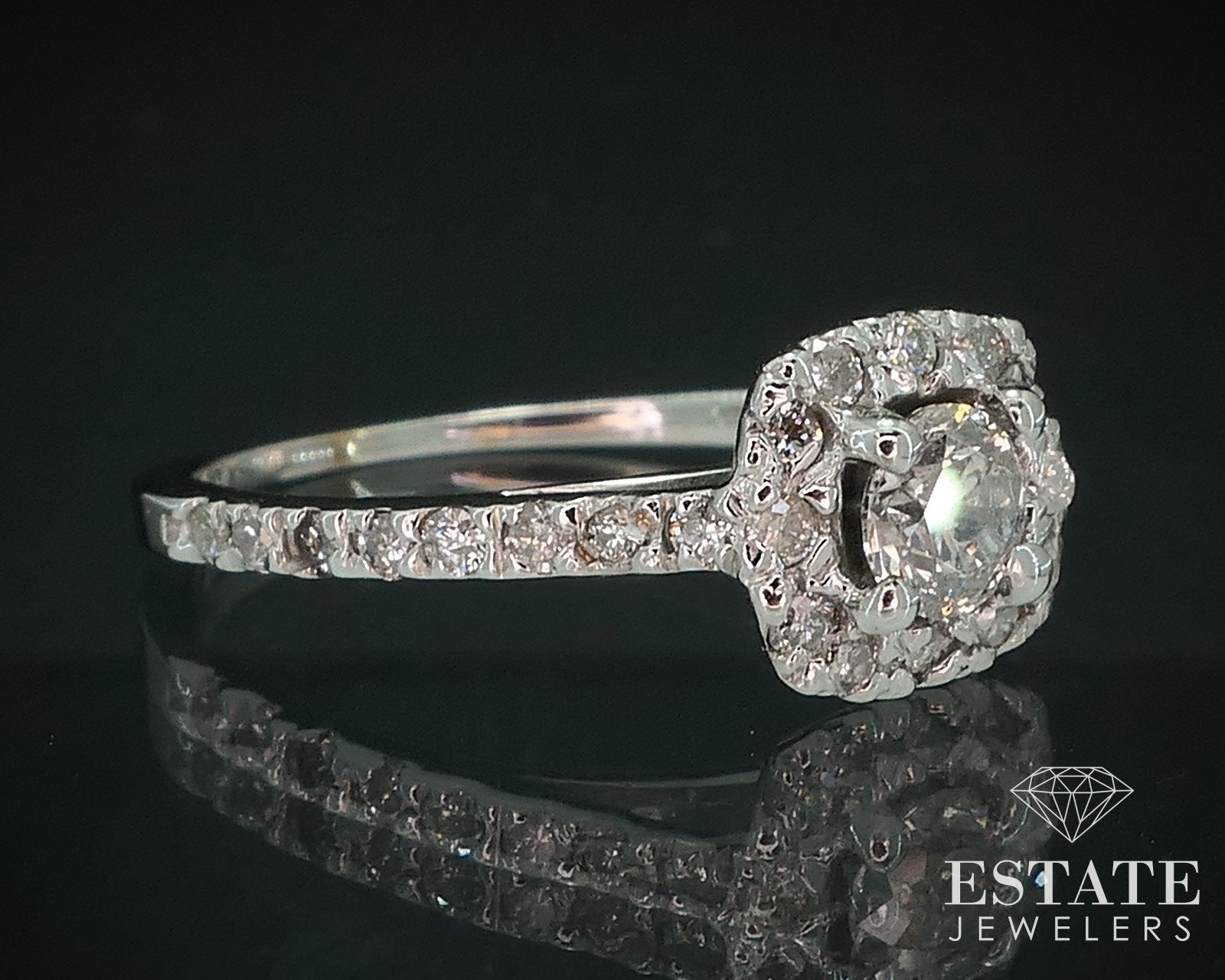 14k White Gold Round Natural .39ctw Diamond Halo Engagement Ring 1.9g i17764