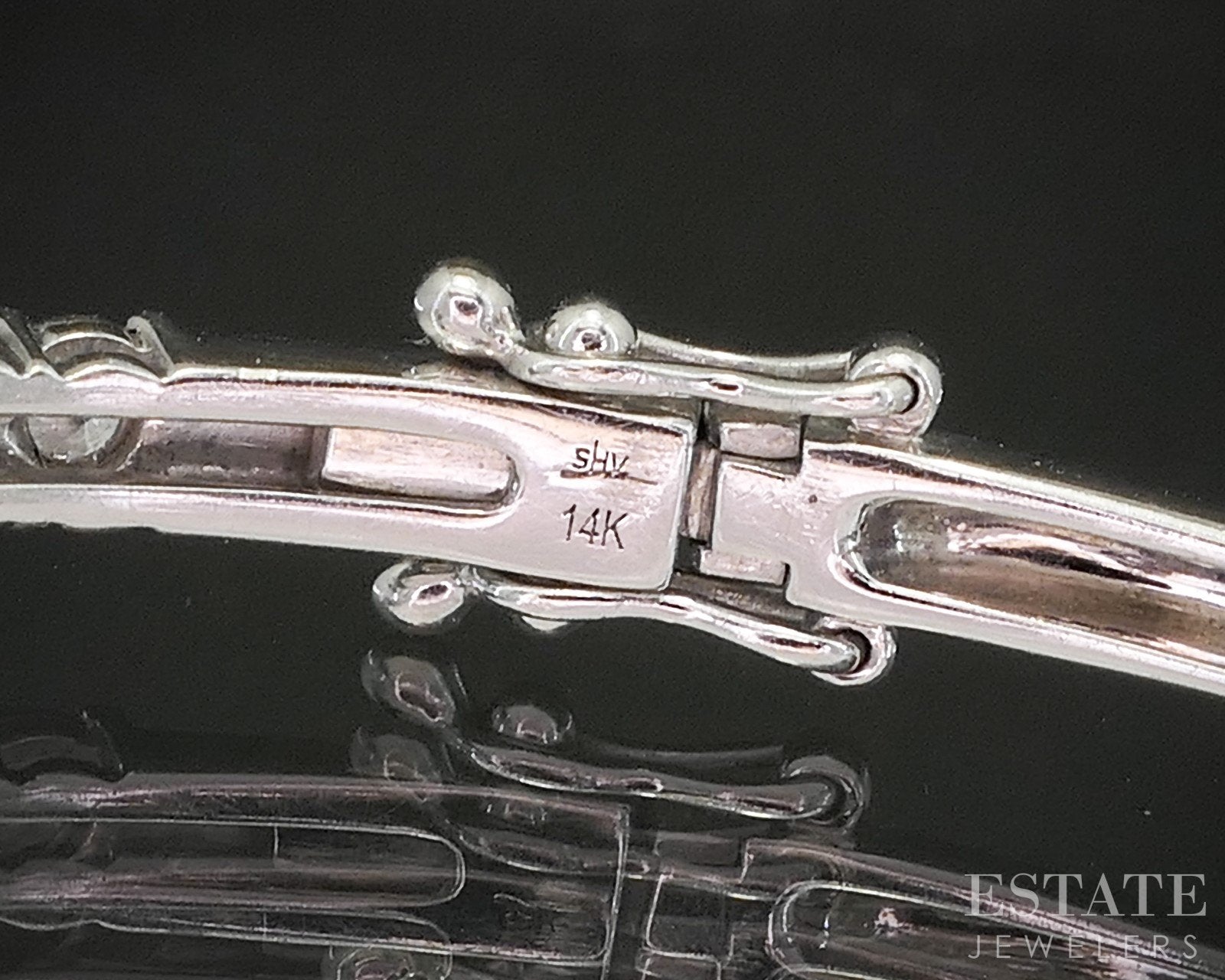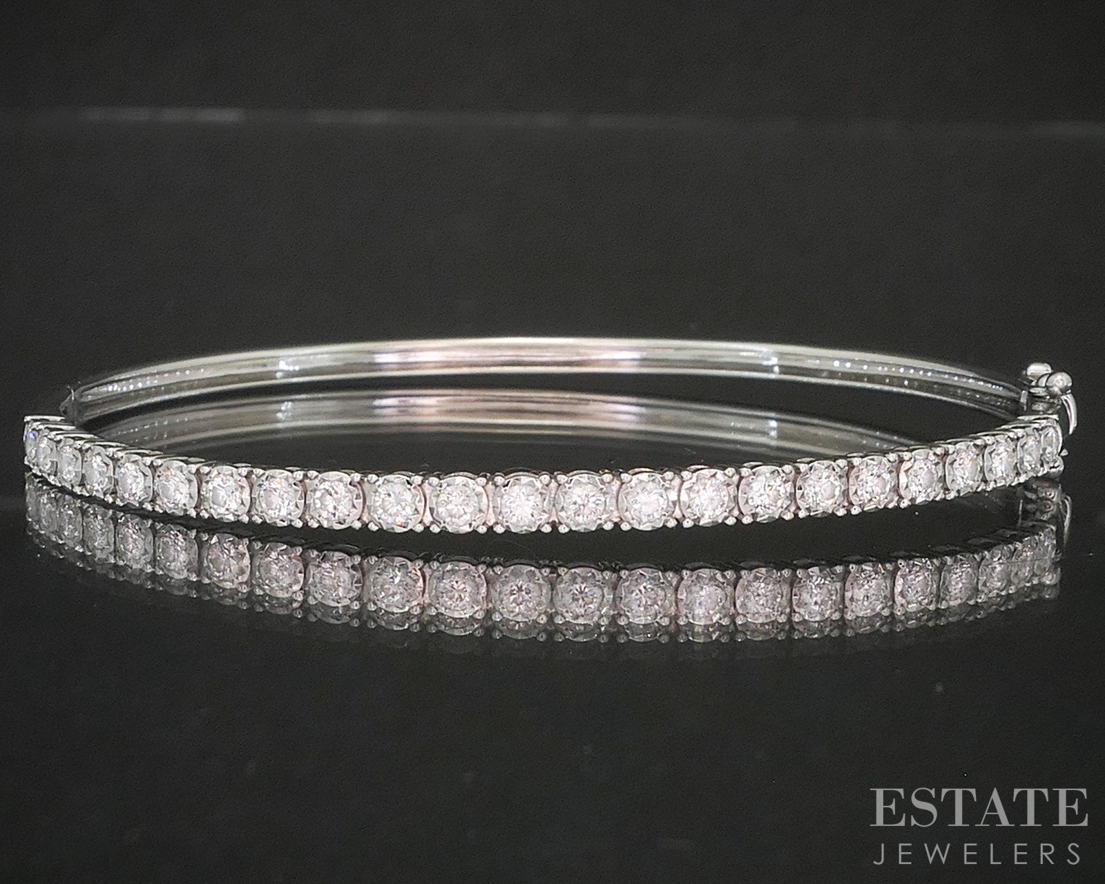14k White Gold Round Natural .59ctw Diamond Hinged Bangle Bracelet 7.4g p92411