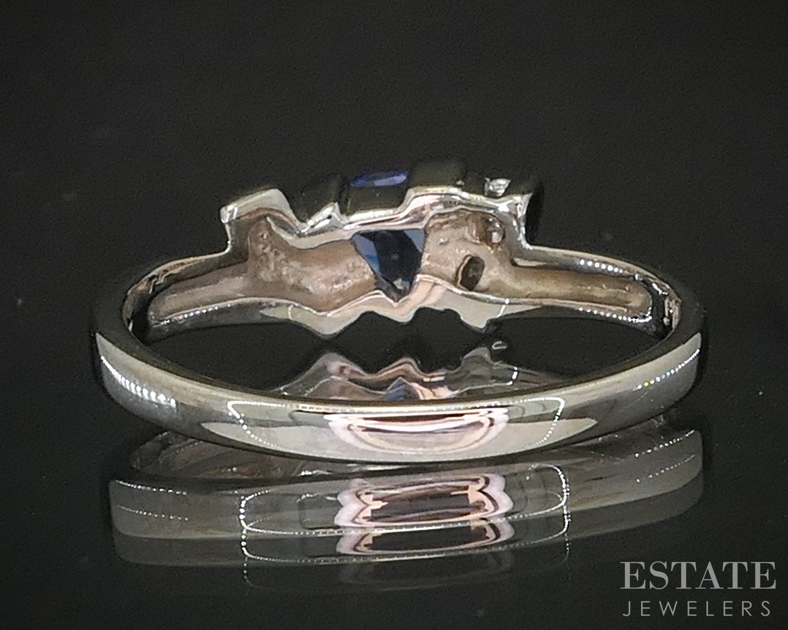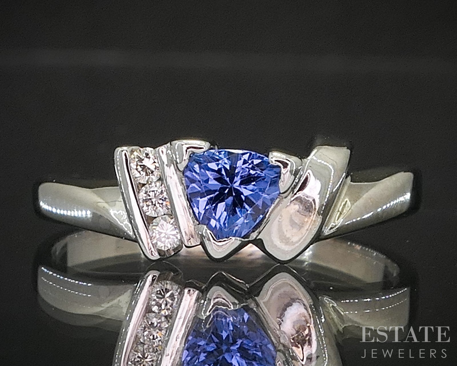 14k White Gold Trillion Natural Tanzanite & Diamond Ladies Ring 3.8g i20278