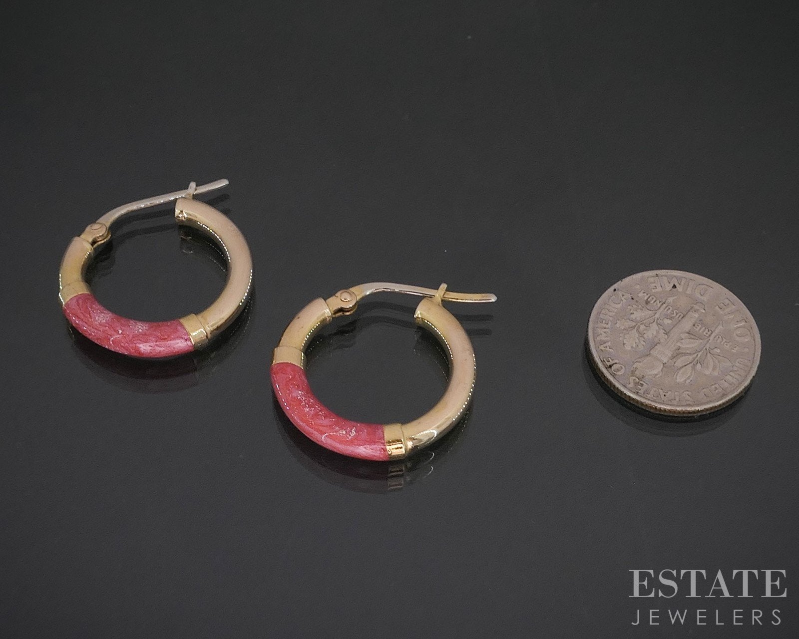 14k Yellow Gold 2mm Pink Enameled Hoop Ladies Earrings 2.8g p16672b