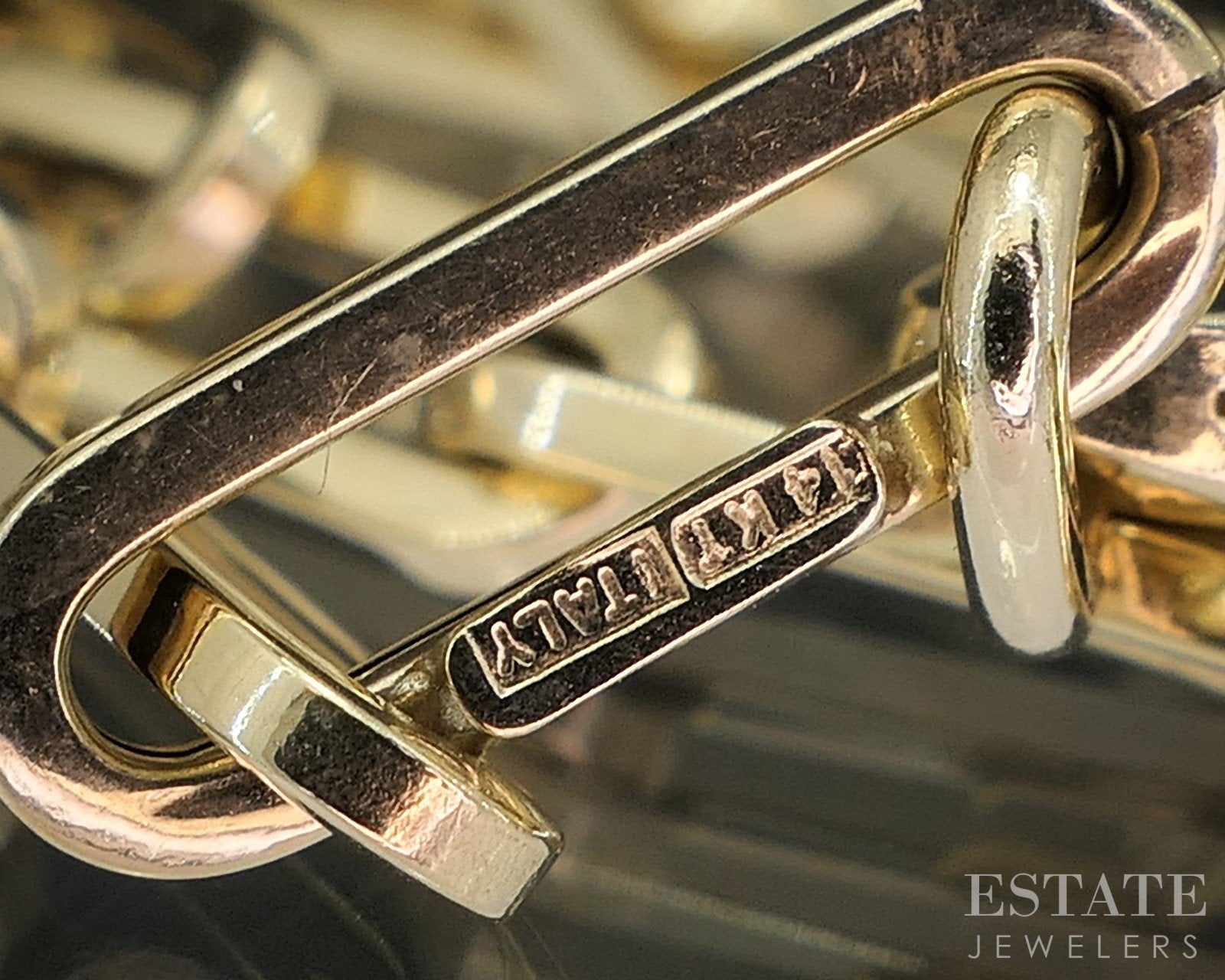 Additional Info: Elevate your everyday style with this timeless 14k yellow gold paperclip link chain necklace. Crafted from genuine 14-karat gold, each elongated, rectangular link offers a sleek and modern silhouette, combining minimalist elegance with bold sophistication. The lightweight yet durable design makes it perfect for layering or wearing solo as a statement piece. Look for the matching bracelet in our store!