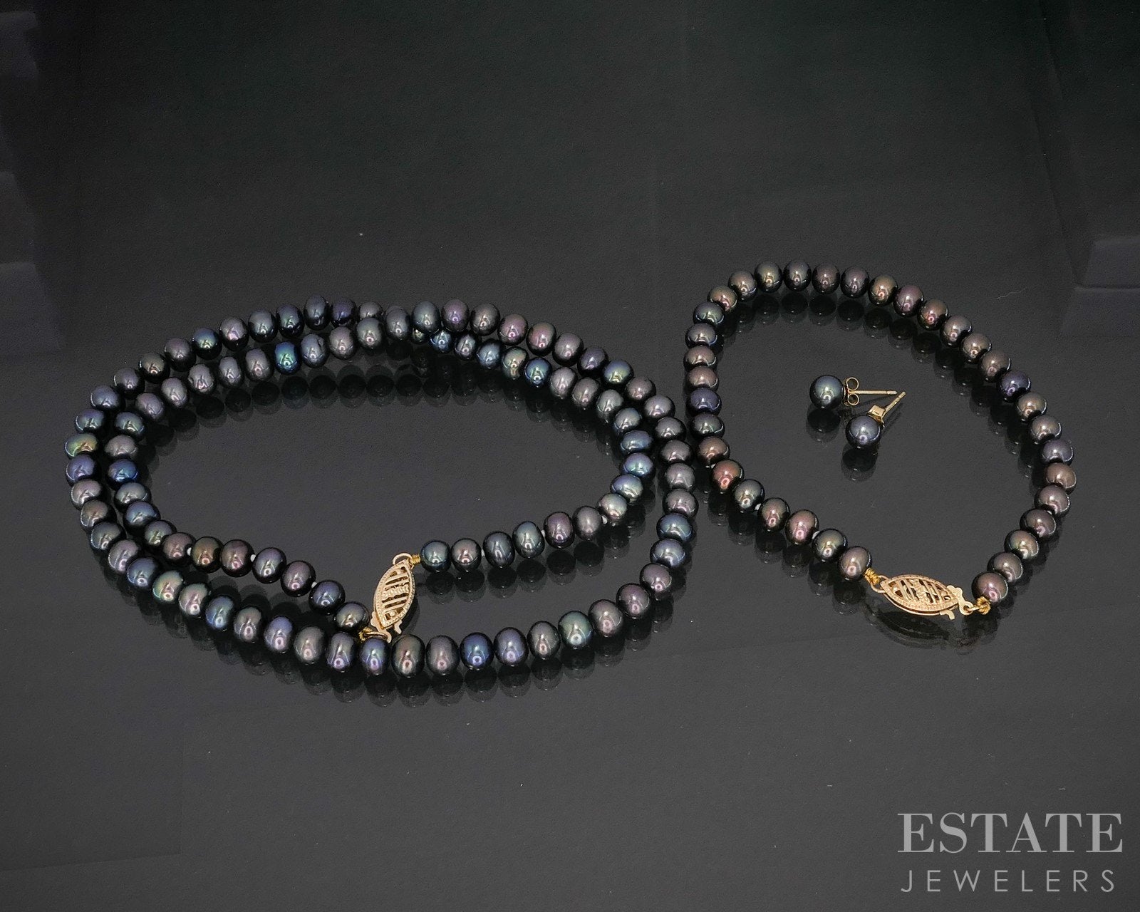 14k Yellow Gold 5mm Cultured Black Pearl Ladies Jewelry Set i19972b