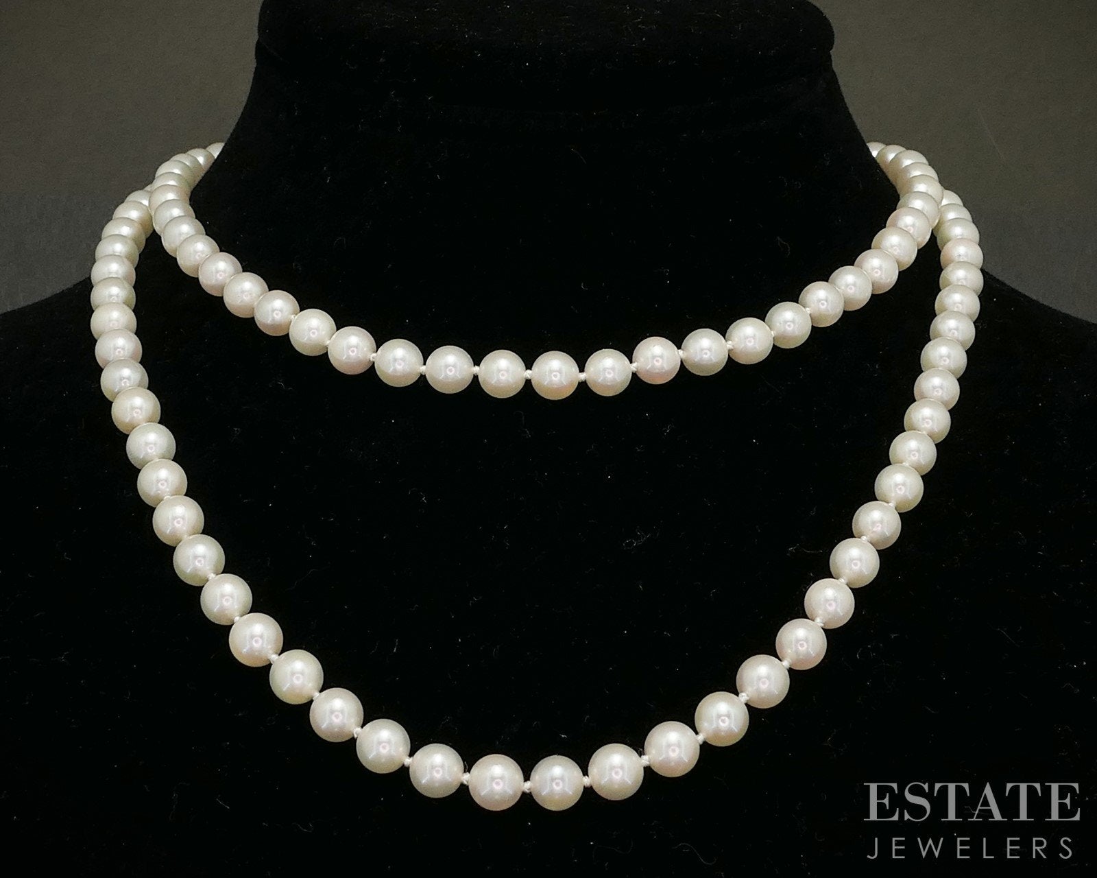 Additional Info: Lovely ladies necklace with lustrous Pearls strung together that have incredible matching creamy color. Perfect piece to wear long or to double up into a choker.