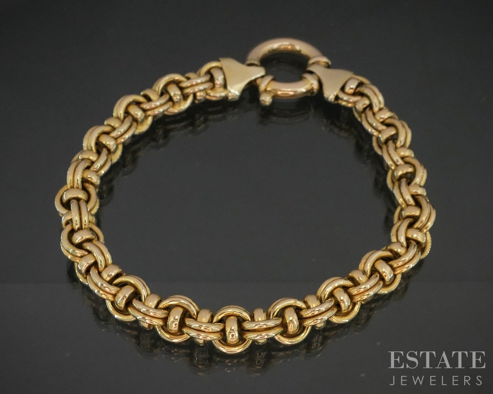 Additional Info: Crafted in rich 14K yellow gold, this rounded double cable link bracelet is a timeless staple with a bold, substantial presence. The design features interlocking rounded cable links arranged in a double formation, creating added dimension and a luxurious weight on the wrist. Each link is smoothly polished to a high shine, allowing the warm glow of the gold to catch the light from every angle. The rounded silhouette softens the classic cable motif, giving the bracelet a fluid, elegant drape and a comfortable feel.