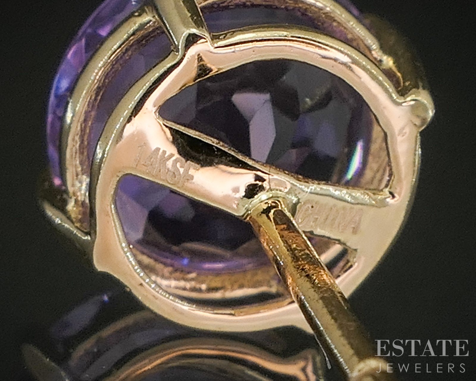 14k Yellow Gold 8mm Round Natural Amethyst Stud Earrings 2.0g p19239b