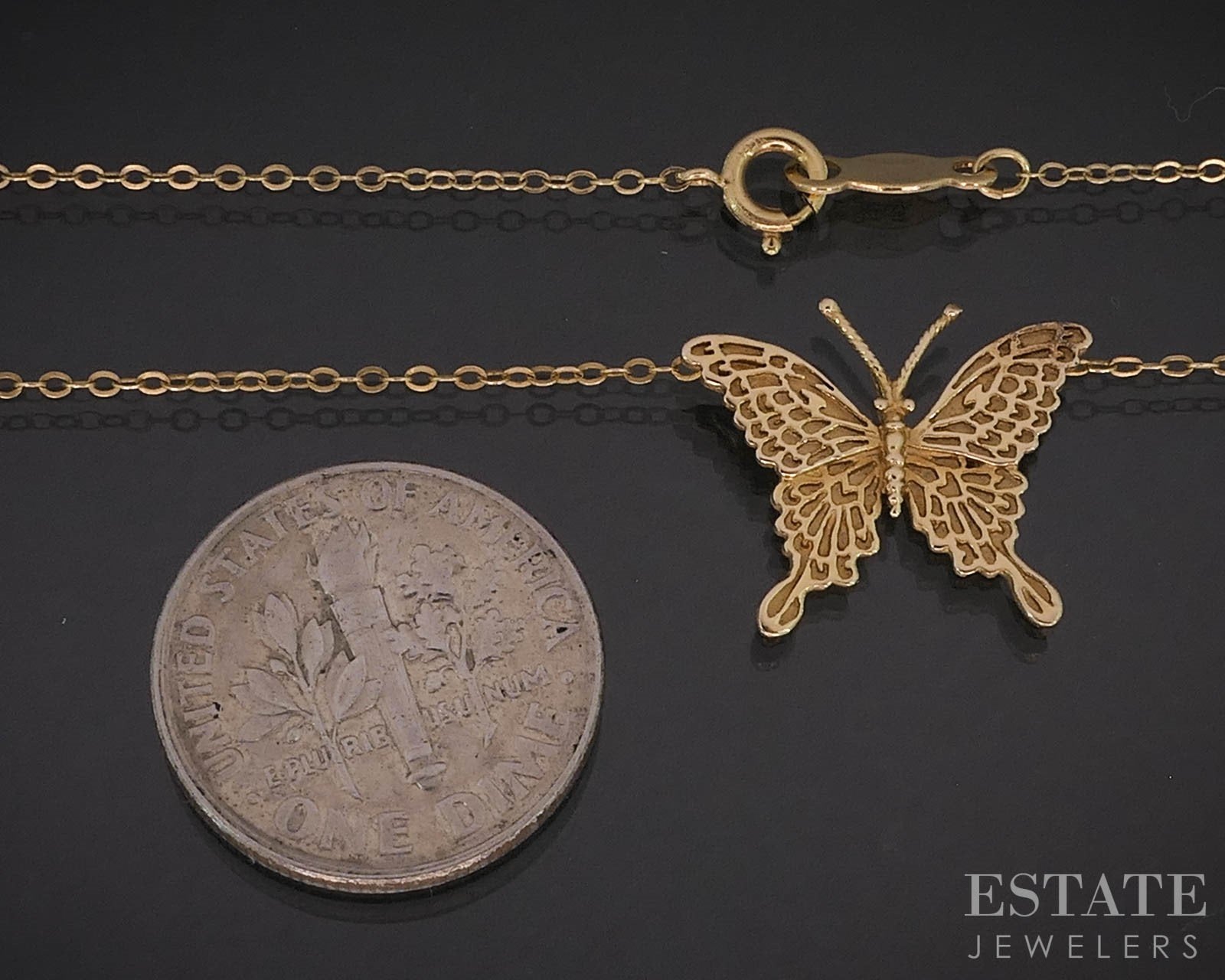14k Yellow Gold Butterfly Ladies Necklace 1.6g 16.5"L i19598b