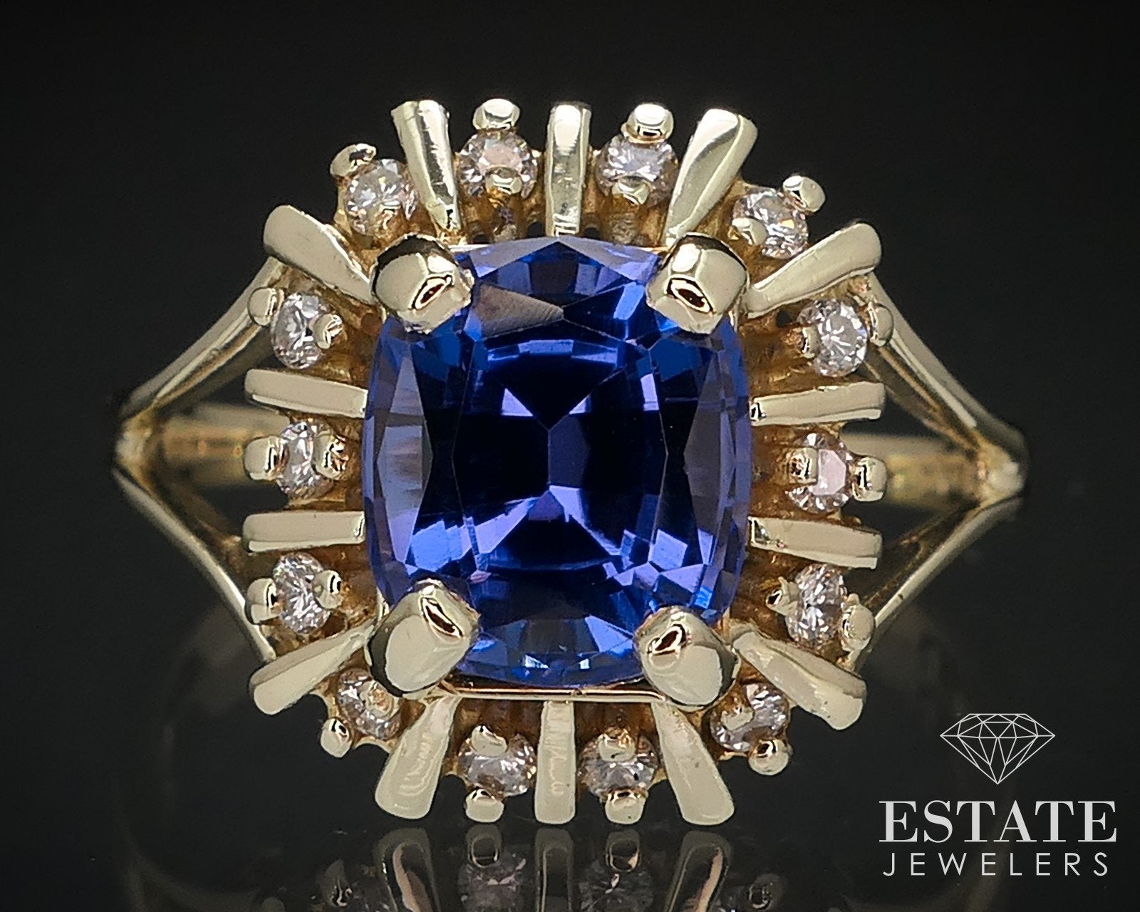 14k Yellow Gold Cushion Natural 2ct Tanzanite & Diamond Halo Ring 4.4g i16753