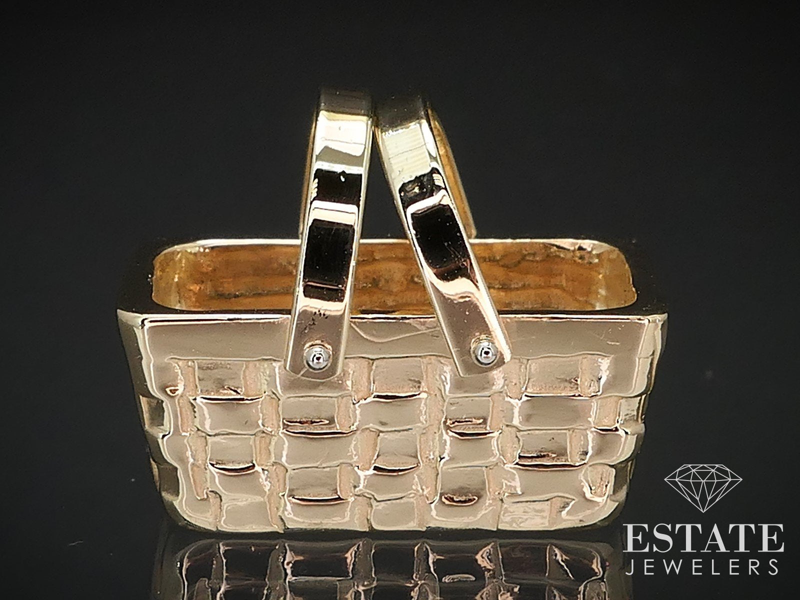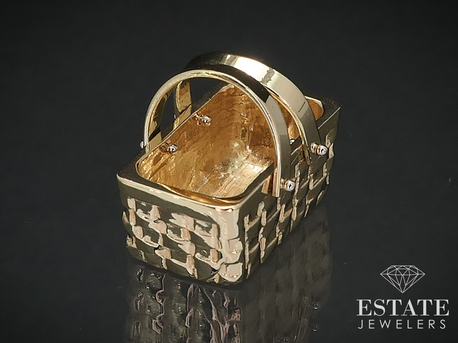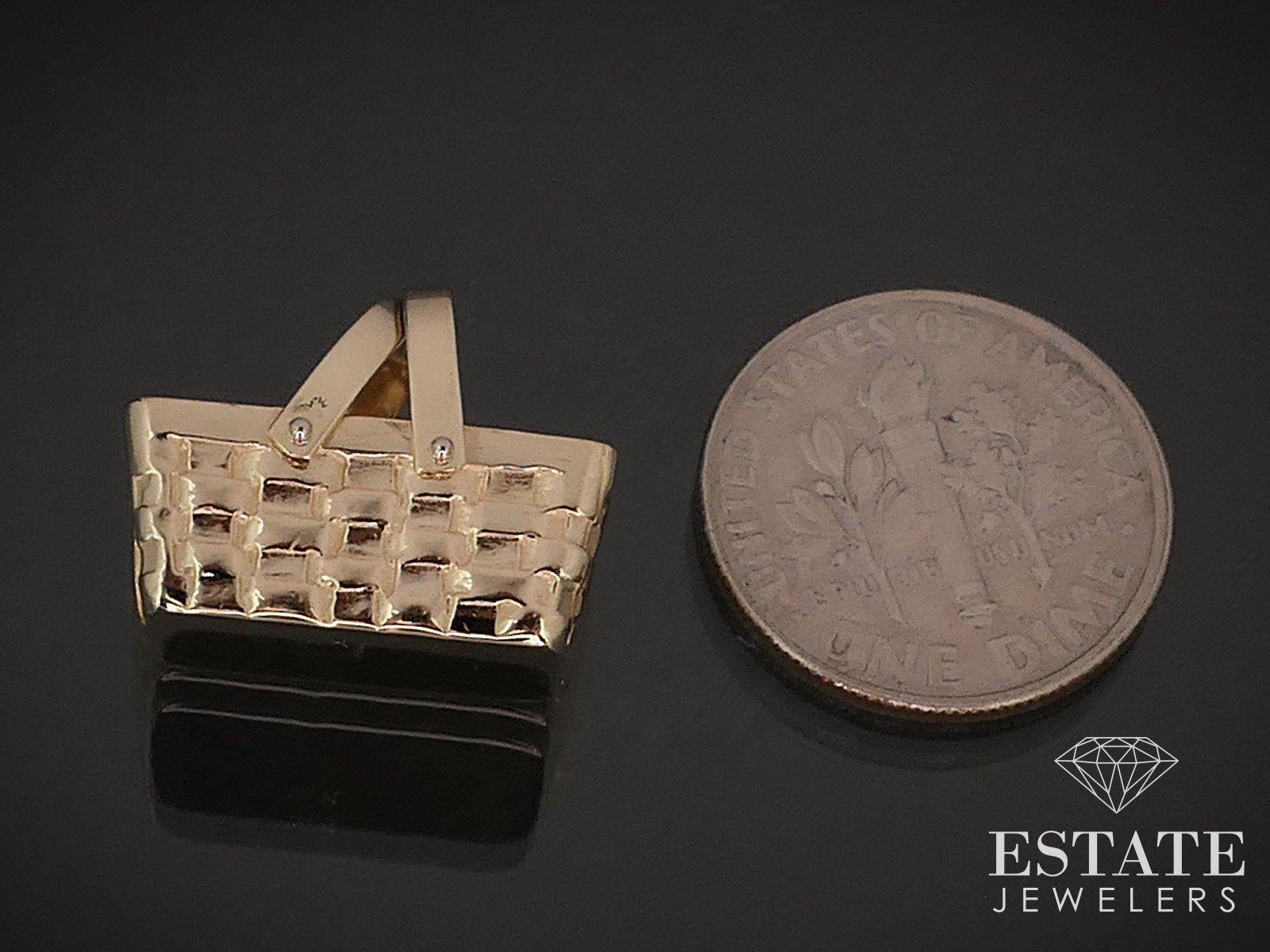 14k Yellow Gold Dimensional Longaberger Picnic Basket Charm 6g i17000