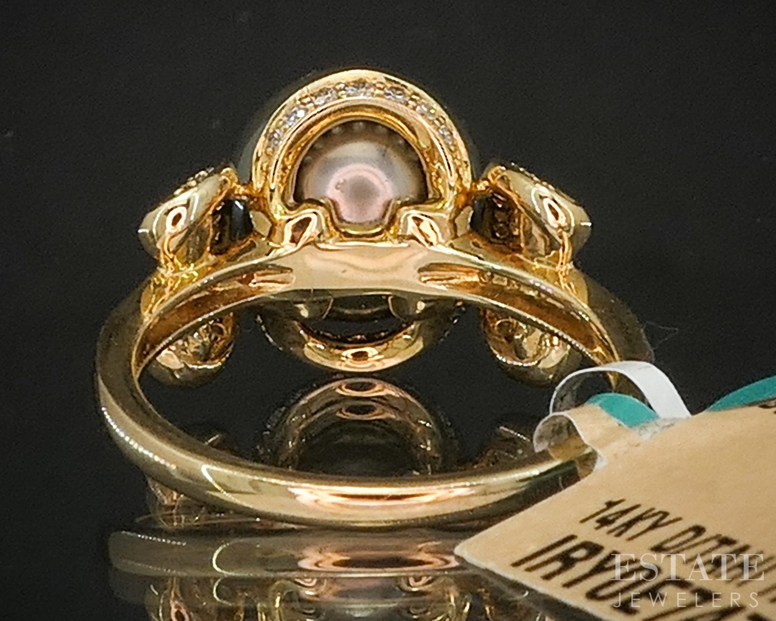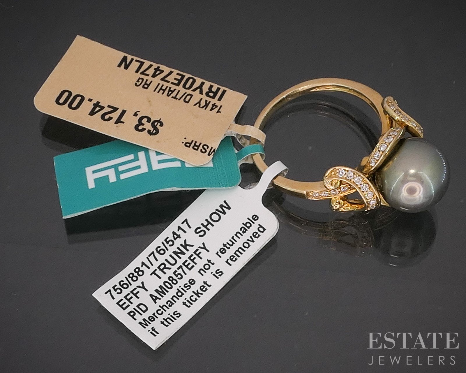 14k Yellow Gold EFFY 10mm Tahitian Black Pearl & Diamond Ring 5.8g p16417