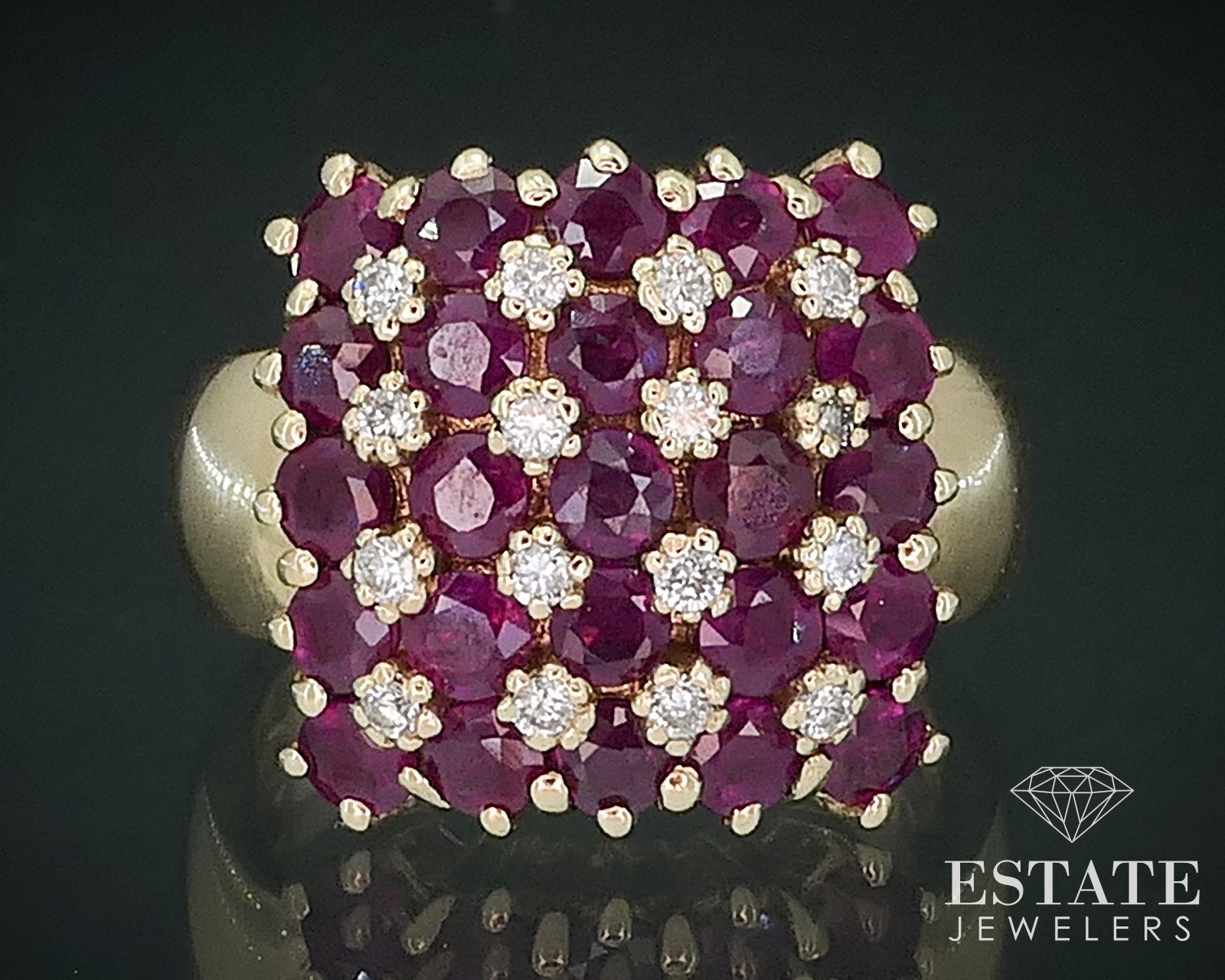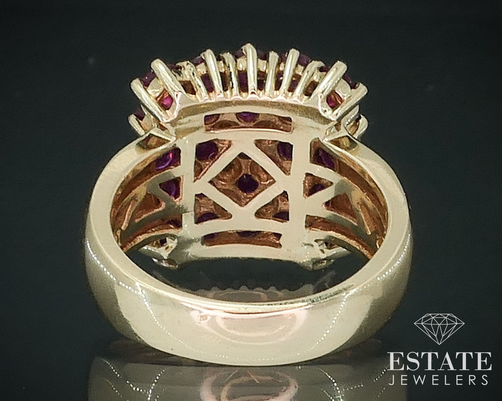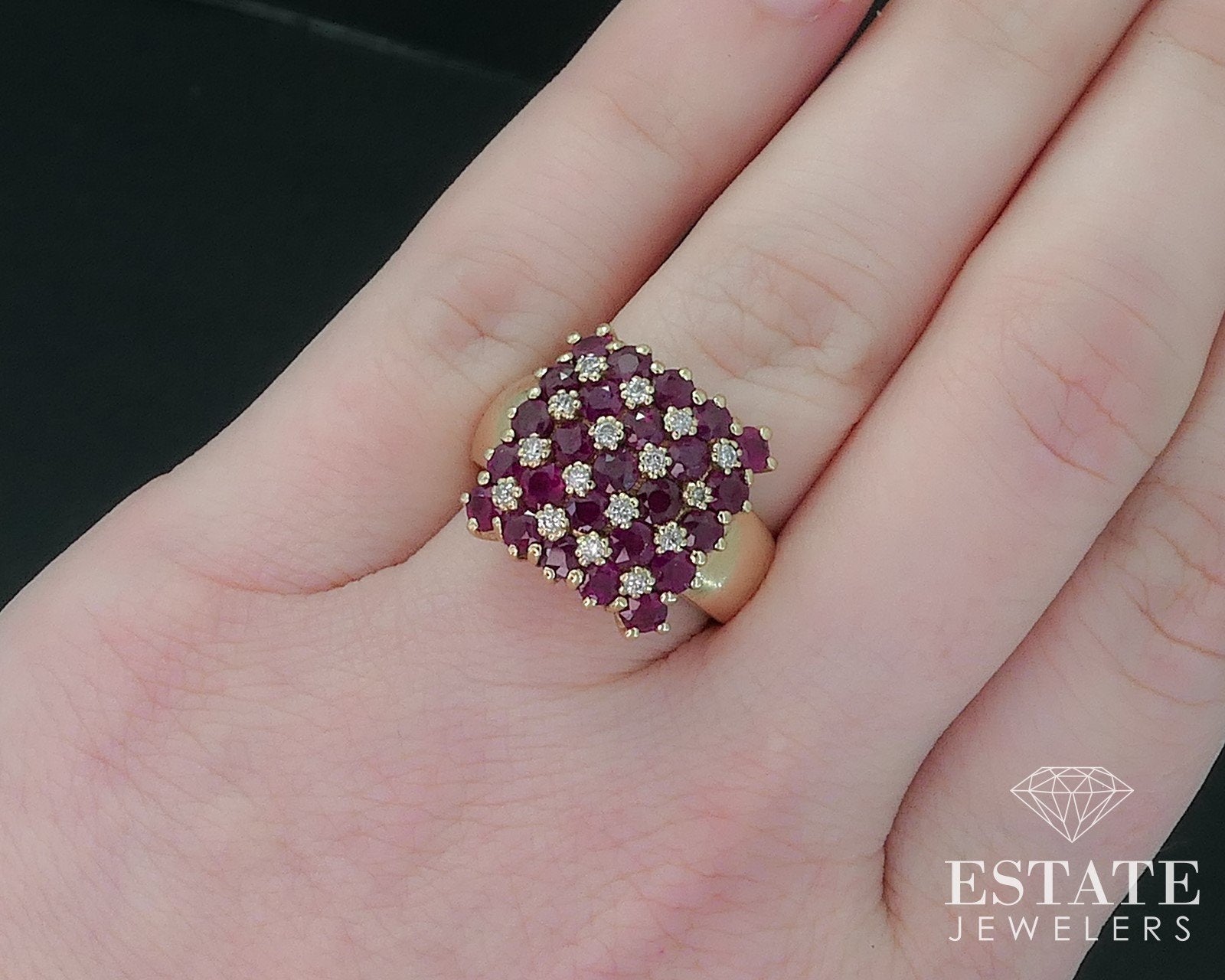 14k Yellow Gold EFFY Natural Ruby & Diamond Ladies Cluster Ring 9.8g i17618