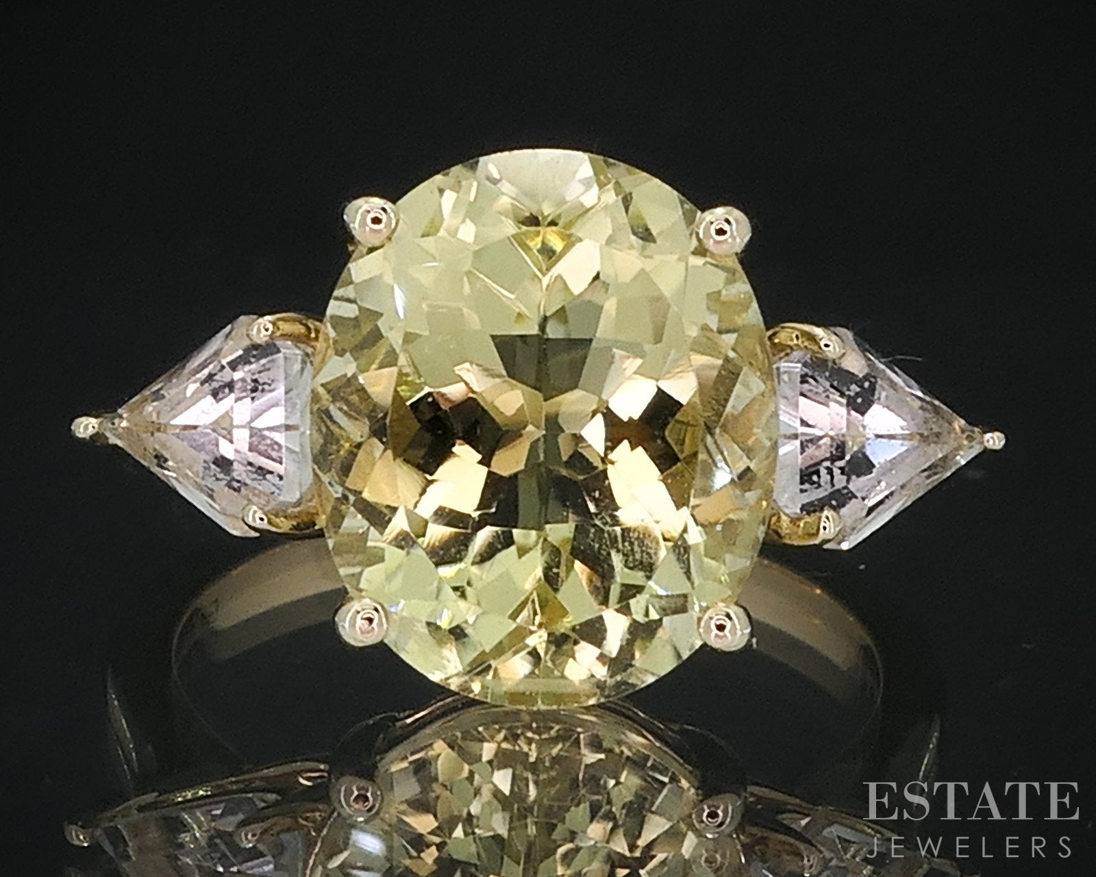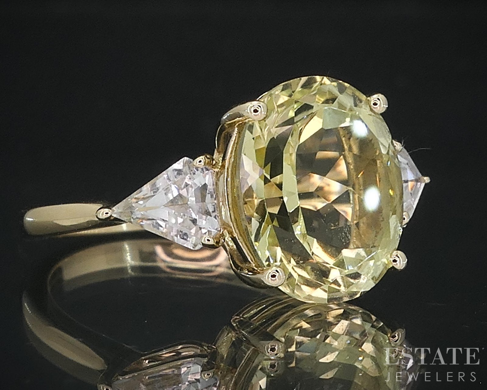 Gemstone Information: Oval cut Yellow Topaz(12mm by 10mm), triangle cut White Topaz (6mm by 5mm)