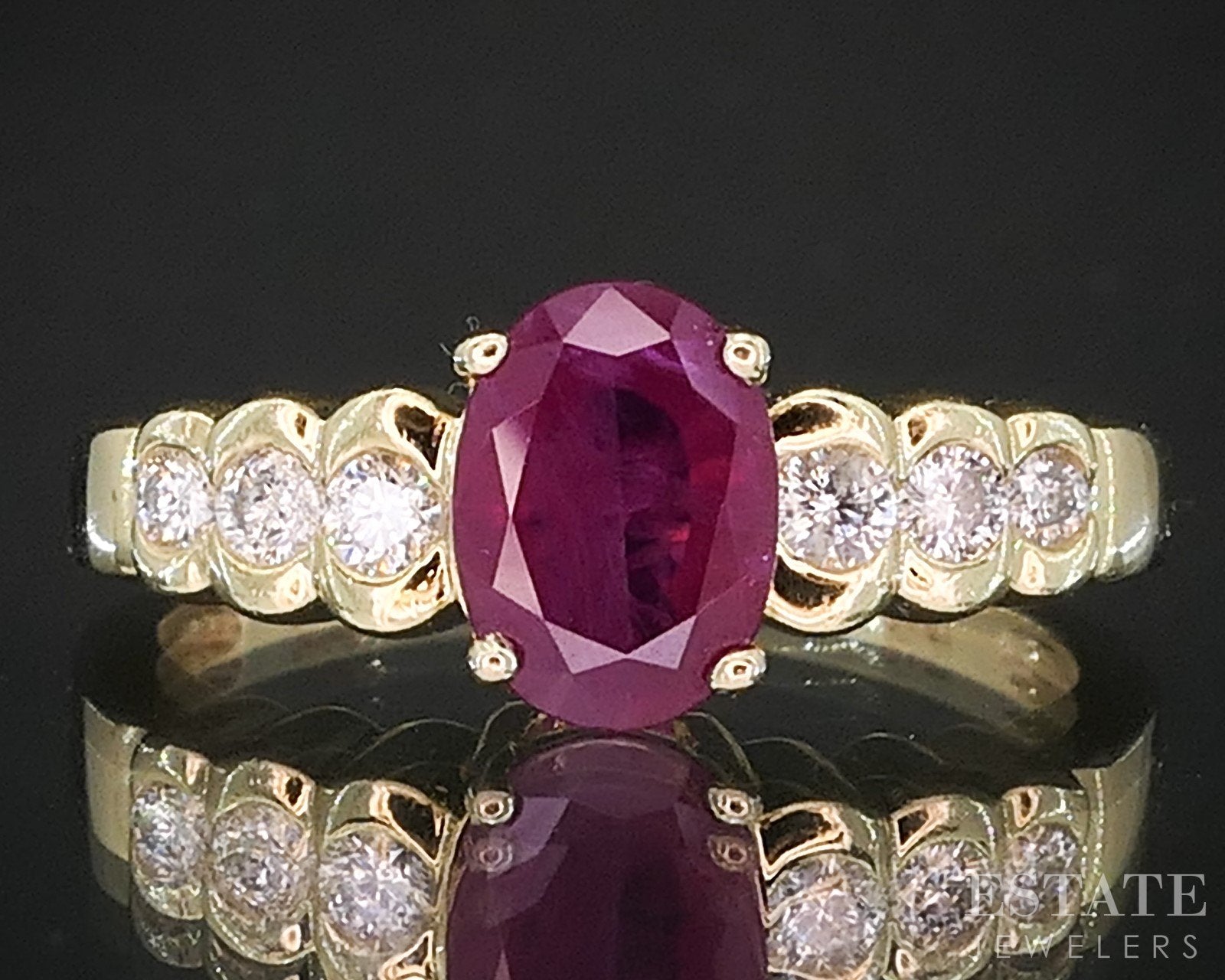 Gemstone Information: Oval cut natural Ruby, 7.1mm by 5.3mm. Approximate .88ct