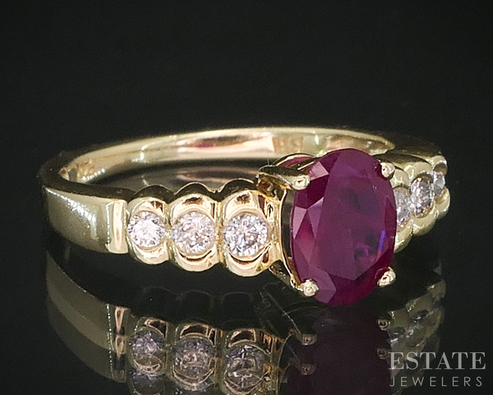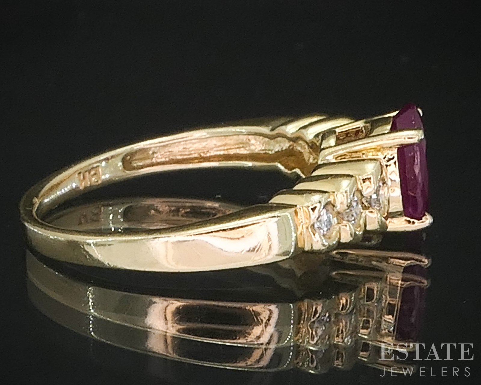 14k Yellow Gold EFFY Oval Natural Ruby & Diamond Ladies Ring 2.5g i19244