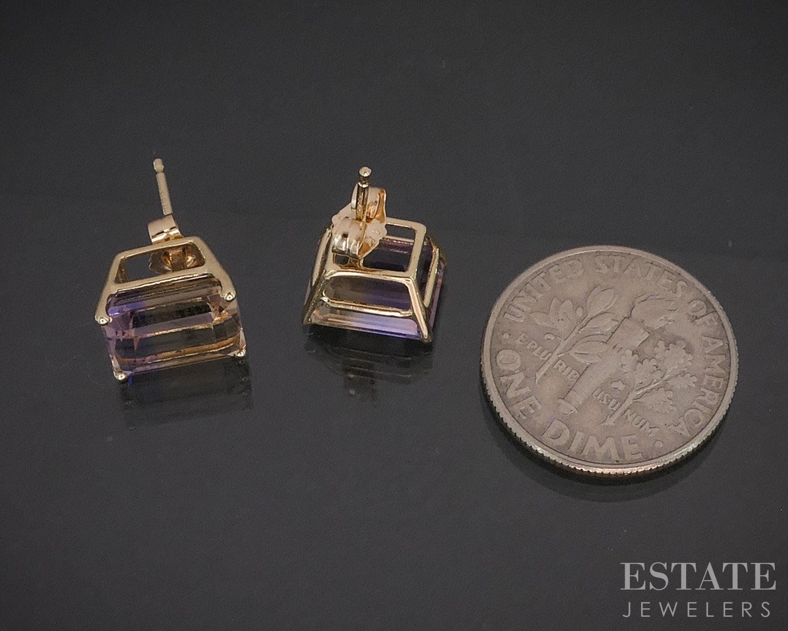 14k Yellow Gold Emerald Cut Natural Ametrine Stud Earrings 1.9g i20363b