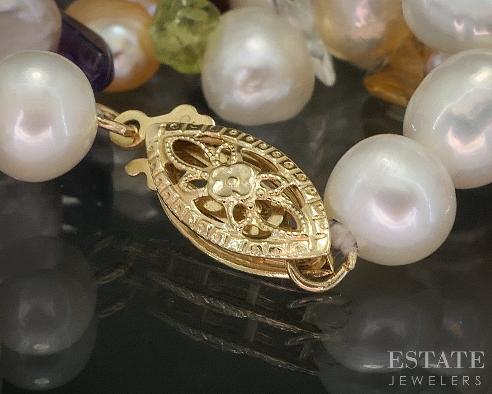 Gemstone Information: 6-9mm long freshwater Pearls. Natural Citrine, Amethyst, Peridot and Aquamarine gems