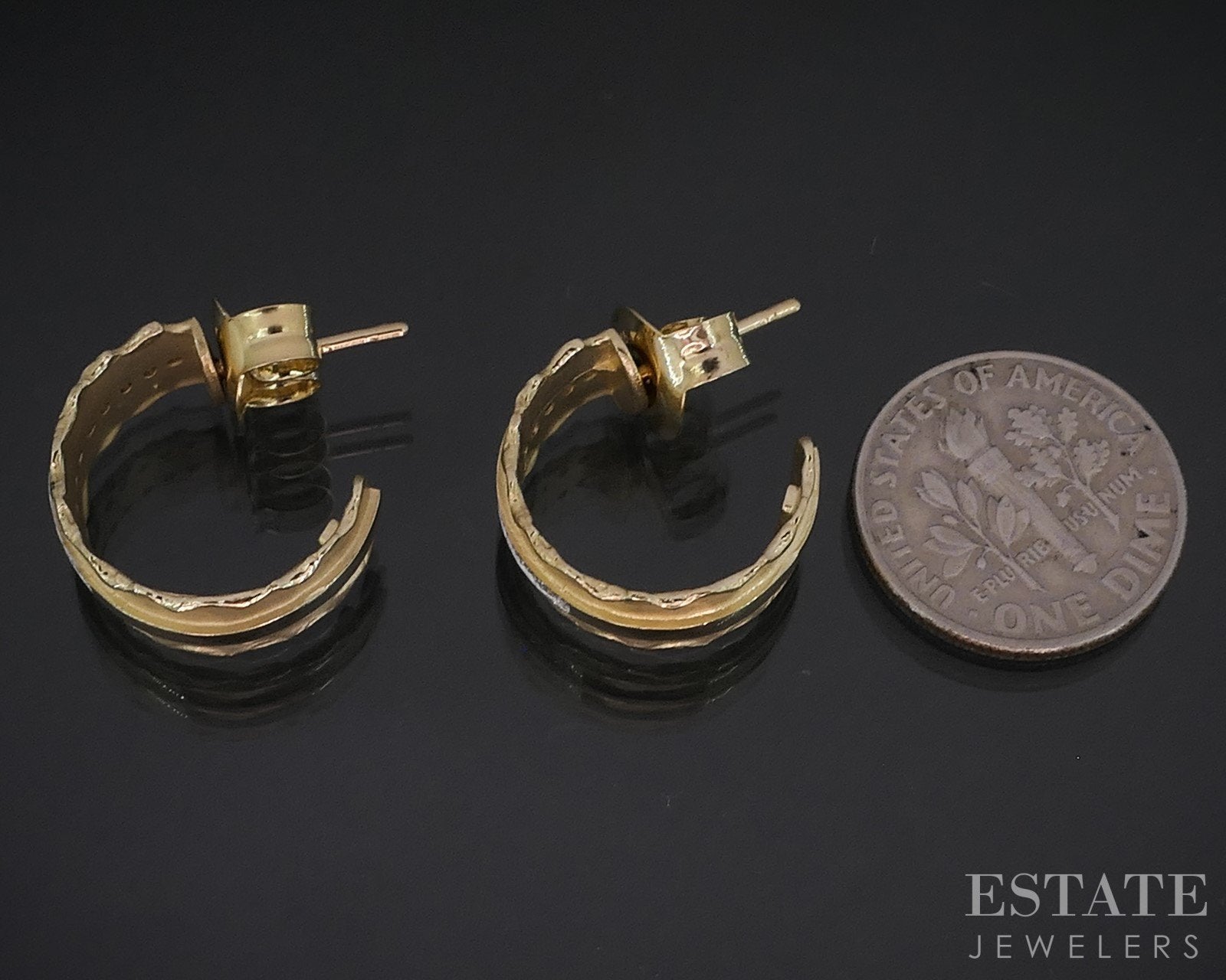 14k Yellow Gold I. Reiss Natural Diamond Hammered Hoop Earrings 5.6g i19108