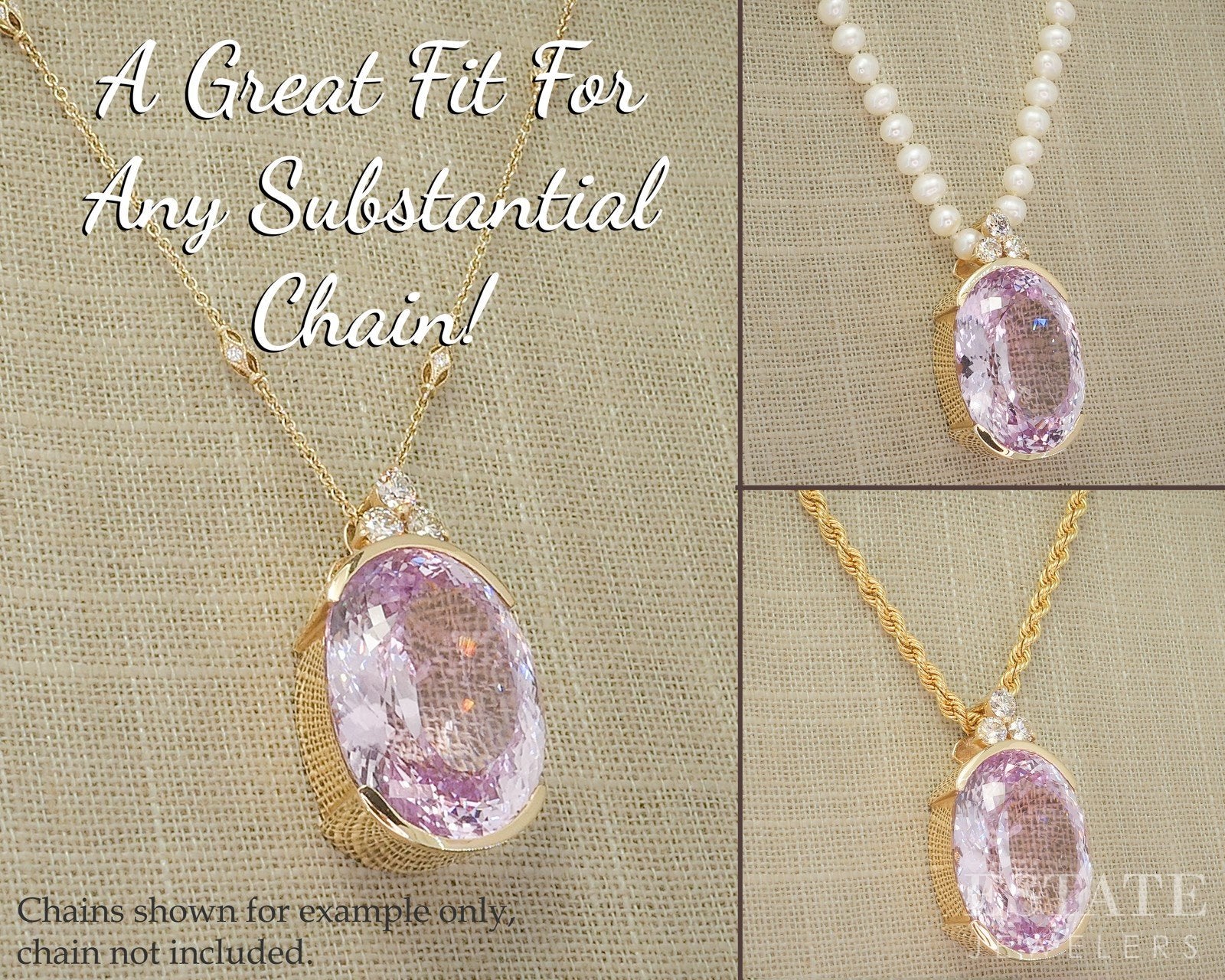 14k Yellow Gold IGI Natural 64.7ct Pink Kunzite & Diamond Pendant 27.2g p67617